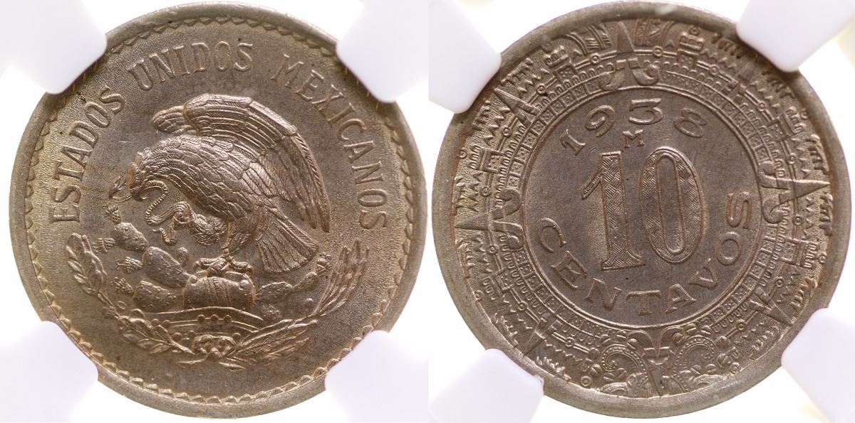 KM # 432, copper-nickel, 23.5mm. MS 65. State: Mexico City: Date: 1938 FHWAC#: 40667