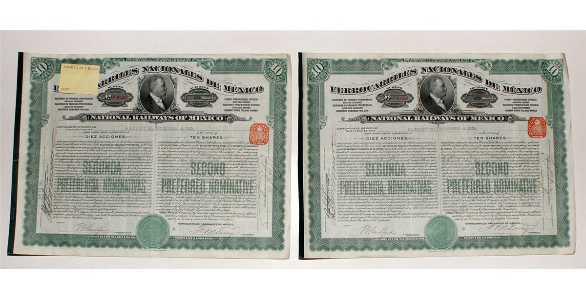 Green. Each has 2 shilling Revenue stamp Date: 1907 Mexico hwac 20559