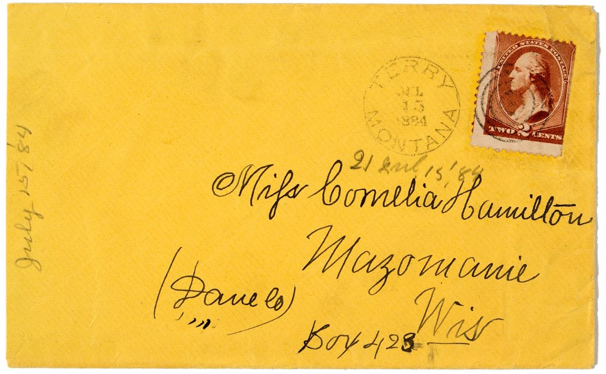 Four total listed in Shellen & Dunn. With a date of July 15, 1884 this is the earliest! Nice, clean strike. Note on back says Frank is working 65 miles from Terry etc. City: Terry State: Montana Date: 1884 ID: 36721
