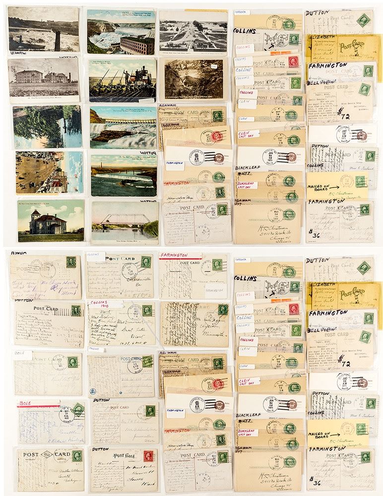 40 total postcards. Two RPC's: 1899 Great Falls flood and Sun River Diversion Dam. Ten picture postcards: Chouteau overview, Teton Bridge, Rainbow Falls, etc. Postmarks include Elizabeth (1899-1910), early 1915 Bole, Fairfield, Cordova, Cleive, Blackleaf, Agawam, Bellview, Collins, Farmington, Bynum, Dutton. (Svoboda Collection) City: Teton County State: Montana Date: c1908-1971 HWAC# 35510