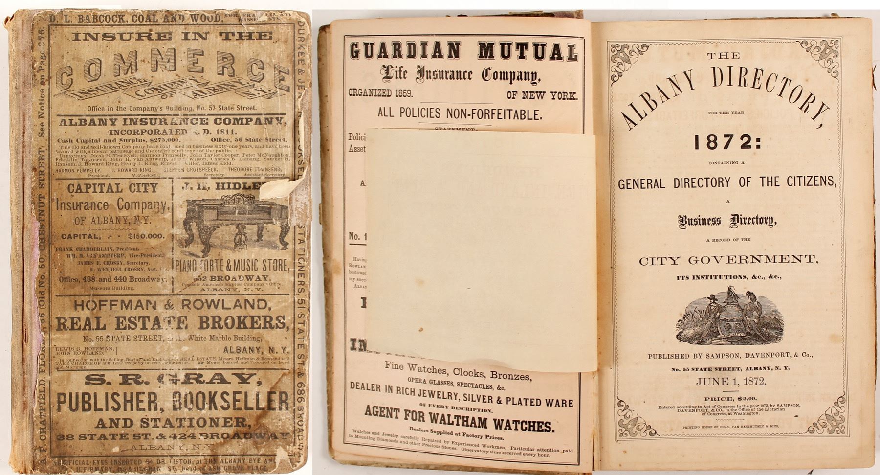 The Albany Directory for the Year 1872, Containing a General Directory of the Citizens, Business Directory, Record of the City Government, Its Institutions, &c., &c. Published by Sampson, Davenport & Co., 1872._x000D_