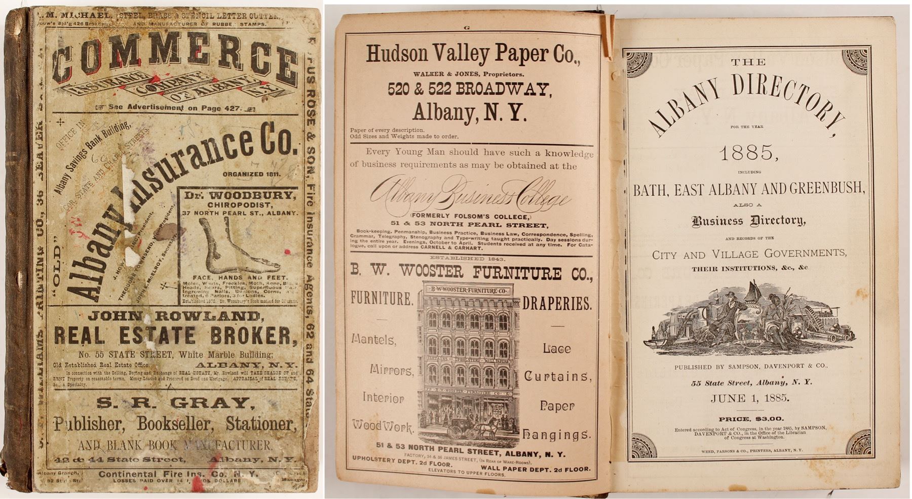 The Albany Directory for the Year 1885 including Bath, East Albany and Greenbush, Also a Business Directory, and Records of the City and Village Governments, Their Institutions, &c., &c. Published by Sampson, Davenport & Co., 1885._x000D_