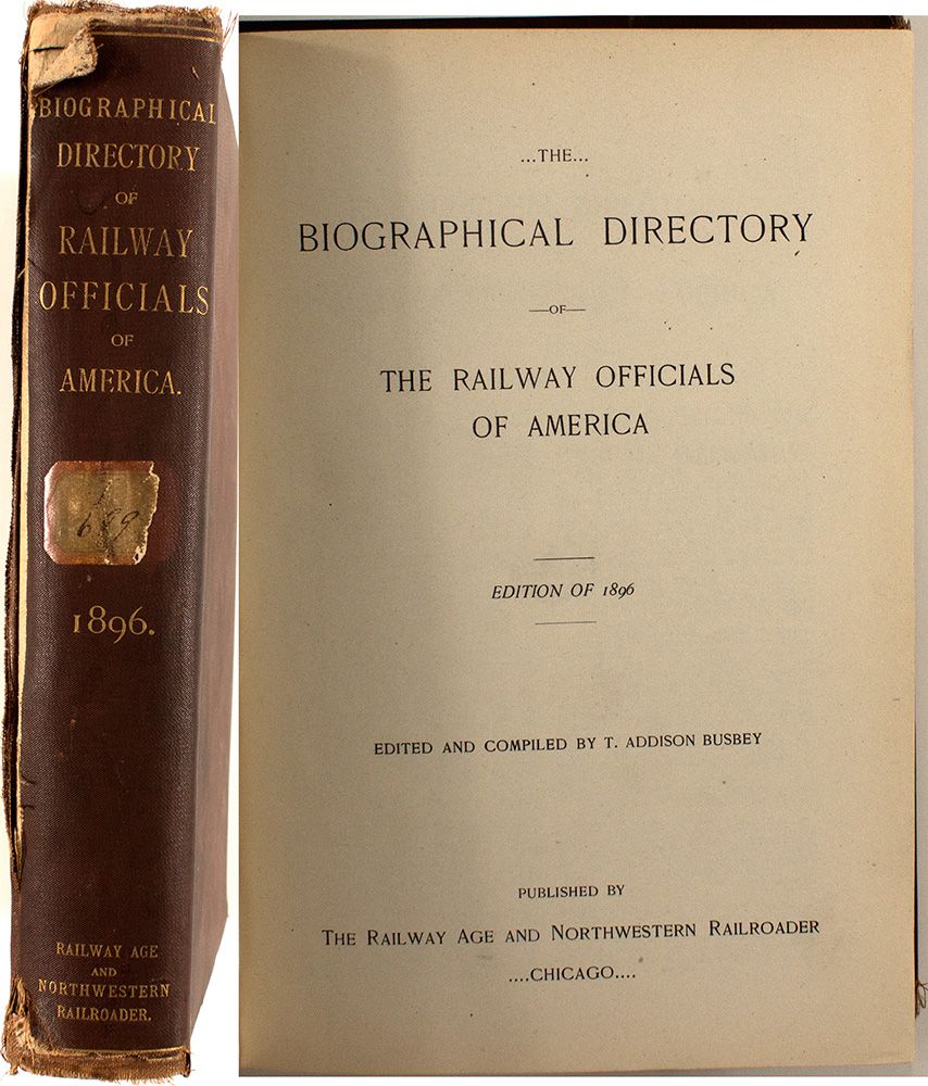 Edited and complied by T. Addison Busbey. Published by the Railway Age and Northwestern Railroader. Chicago. 525 pages. Brown cloth cover, with a loose spine. There is only 1 other copy of this piece listed in OCLC. Rarity: [i].City: County: State: Date: 1896