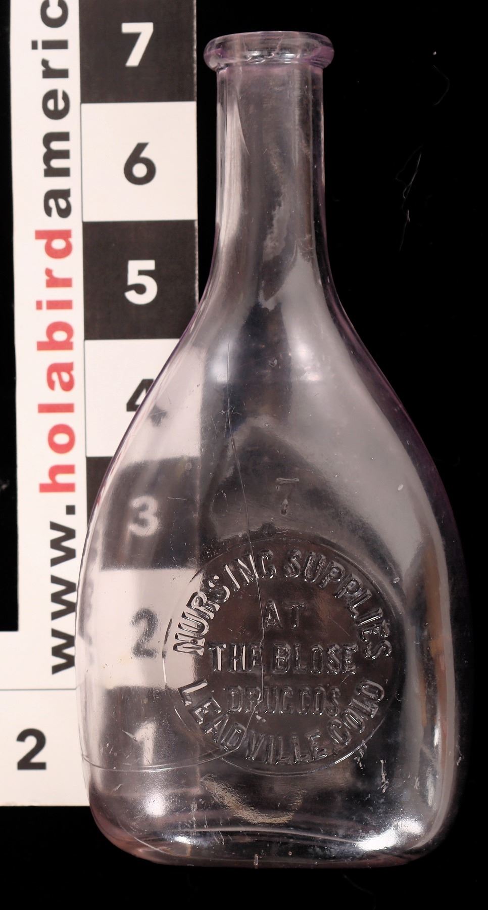 Rare Nursing Supplies/At/The Blose/Drug Co's/Leadville, Colo. Embossed tablespoon and ounce markers on back. Not listed in Preble drug section. c. 1897-1900. 6.5". No apparent chips or cracks. Reed Collection.