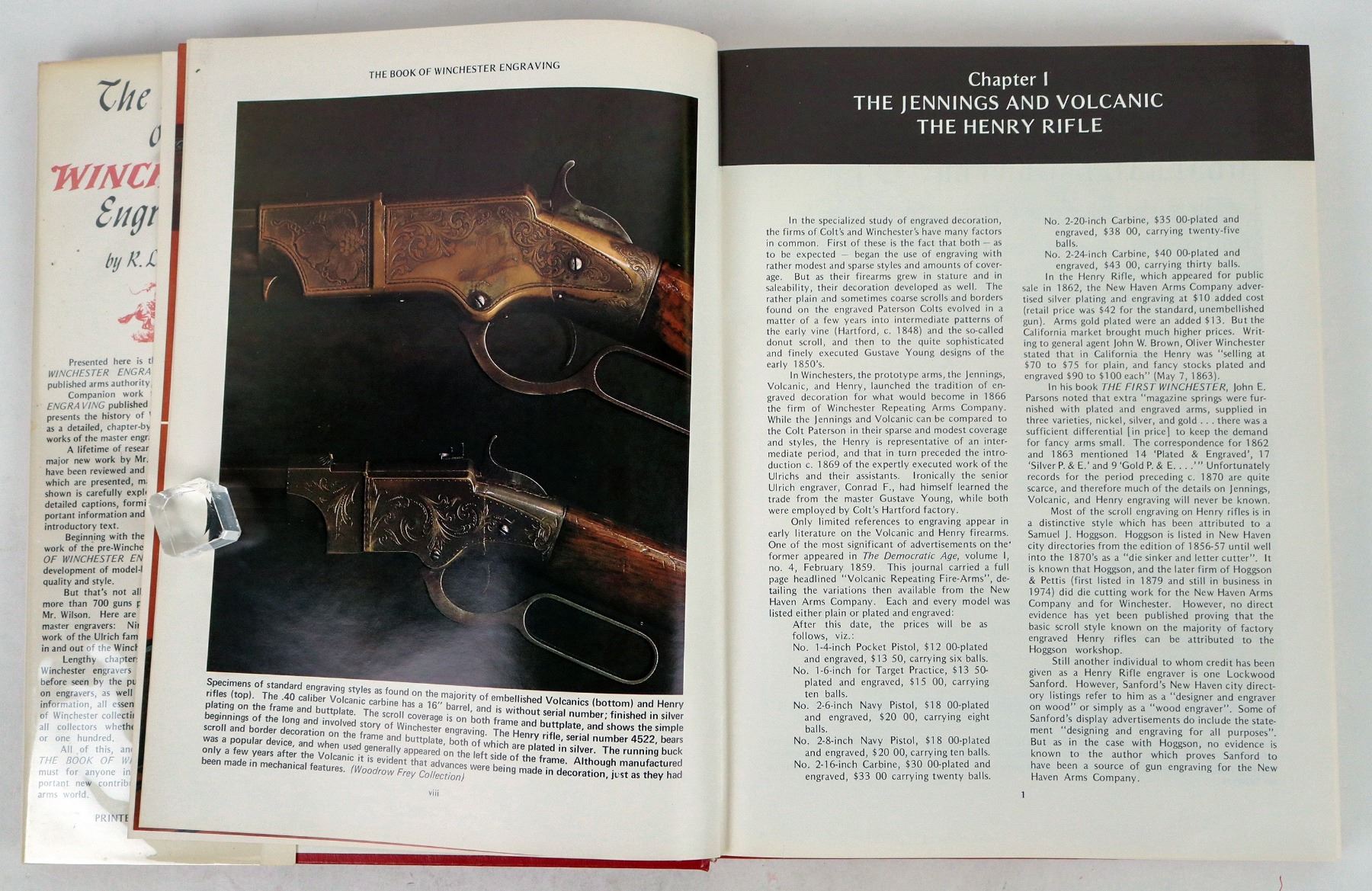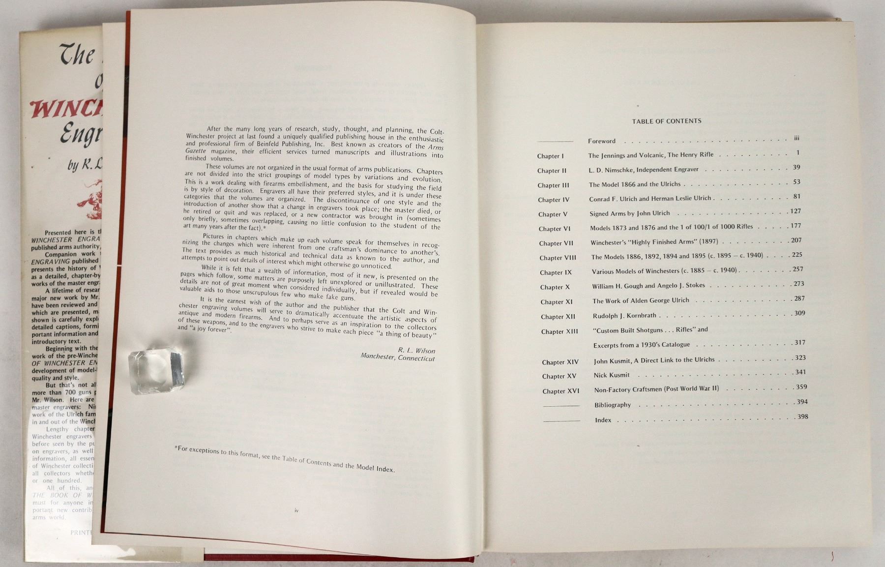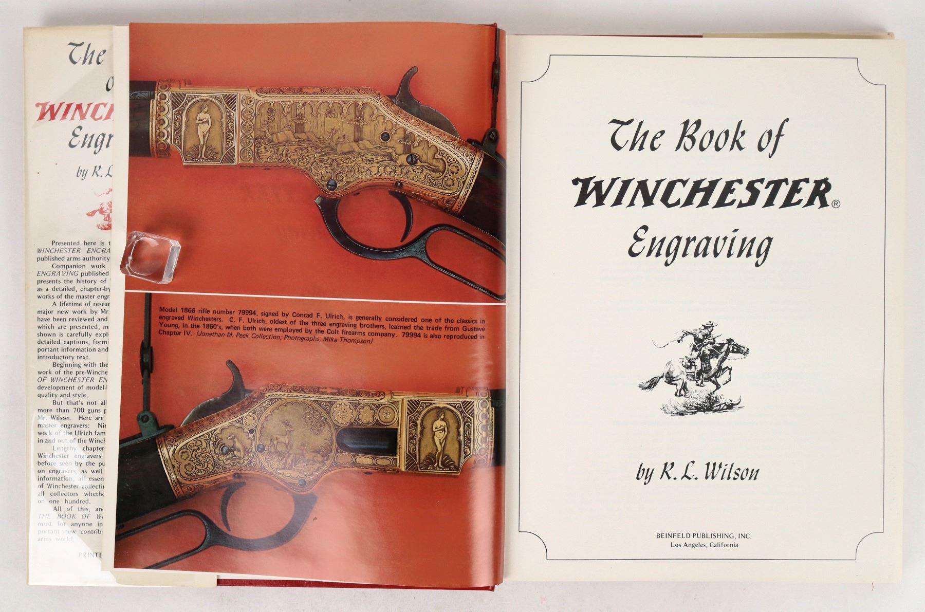 "The Book of Winchester Engraving" by R.L. Wilson published in 1975 first edition. pp. 394 in red leather with a red/yellow DJ. In very good condition with a slanted spine. Please see photo for details.