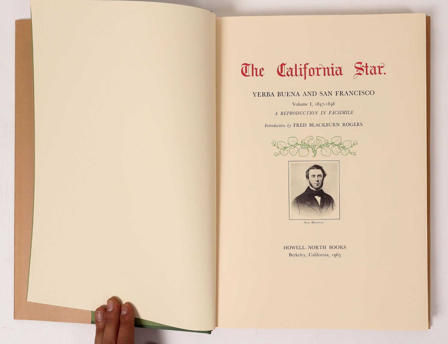 Reprint of The California Star edited by Sam Brannan, containing Yerba Buena and San Francisco, Volume I 1847-48. With an introduction by Fred Blackburn Rogers. Published by Howell-North Books, Berkeley, CA, 1965. Helpful index in the back. May be used for research purposes.