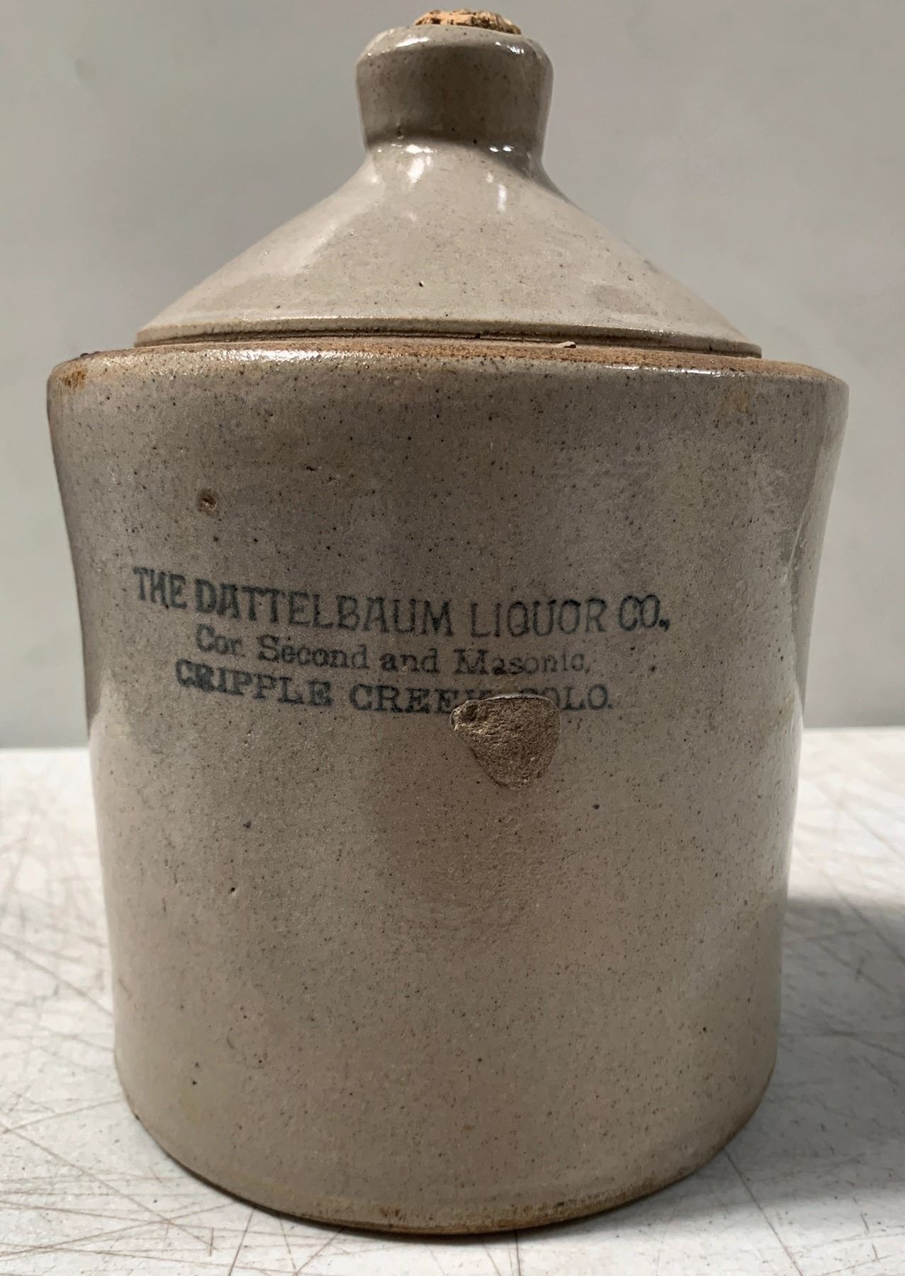 J-30 in Preble. 6" diam., 8" tall. Half gallon. Small piece of pottery from factory on exterior. Rare.