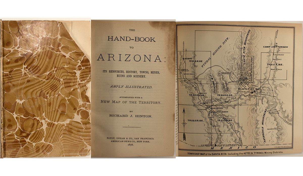 Hinton, R. J.; signed. Lacking all covers and spine, torn corners first two, and last two pages. Inscribed by Hinton: "To general Carmen with the (writing unclear) of the author, R.J. Hinton". Stain and foxing.City: County: State: AZDate: 1878