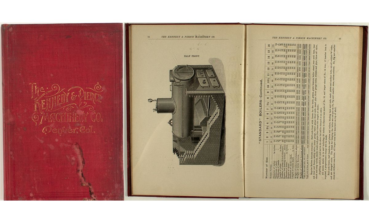 "Kennedy & Pierce Machinery Co. Illustrated Catalogue of Mining Machinery and General Supplies." "State Agents for Ingersoll Sergent Rock Drill & Compressor Co. Erie City Iron Works, Boilers & Engines, Ottumwa Iron Works, Hoisting Engines, Cameron Steam Pump Co." The office & warehouse are located in Denver. There are listings for numerous hoisting engines, boilers, wheels, pumps, turbines, gauges, and many other items. There are numerous detailed B&W litho illustrations of the various products, listed throughout this smaller 97 page catalog, along with a section in the rear listing the company 's additional wares, such as valves, gaskets, wrenches, etc. Catalog is in very good condition. There are no loose pages, and the hard cover bindings and corners show only some very minor wear. There is minor staining on the cover, but all inner pages are in great condition. There are no listings for this book on OCLC. Rarity: [i]City: DenverCounty: DenverState: CODate: