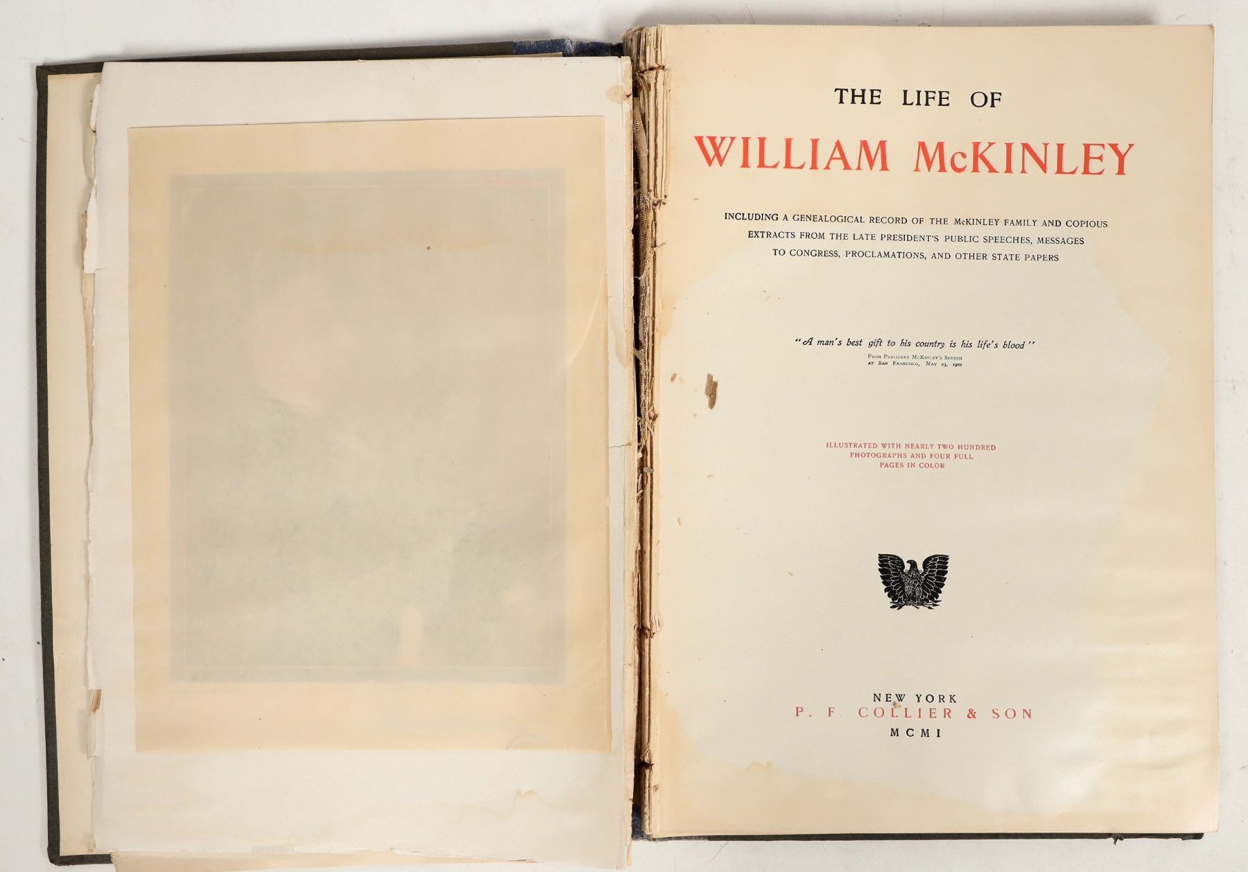 Including a Genealogical Record of the McKinley Family and Copious Extracts from the Late President's Public Speeches, Messages to Congress, Proclamations, and Other State Papers. Illustrated with Nearly Two Hundred Photographs and Four Full Pages in Color. PF Collier & Son, 1901. 128 pp. Pages detached from covers and spine. Toning and staining. 14 x 10"