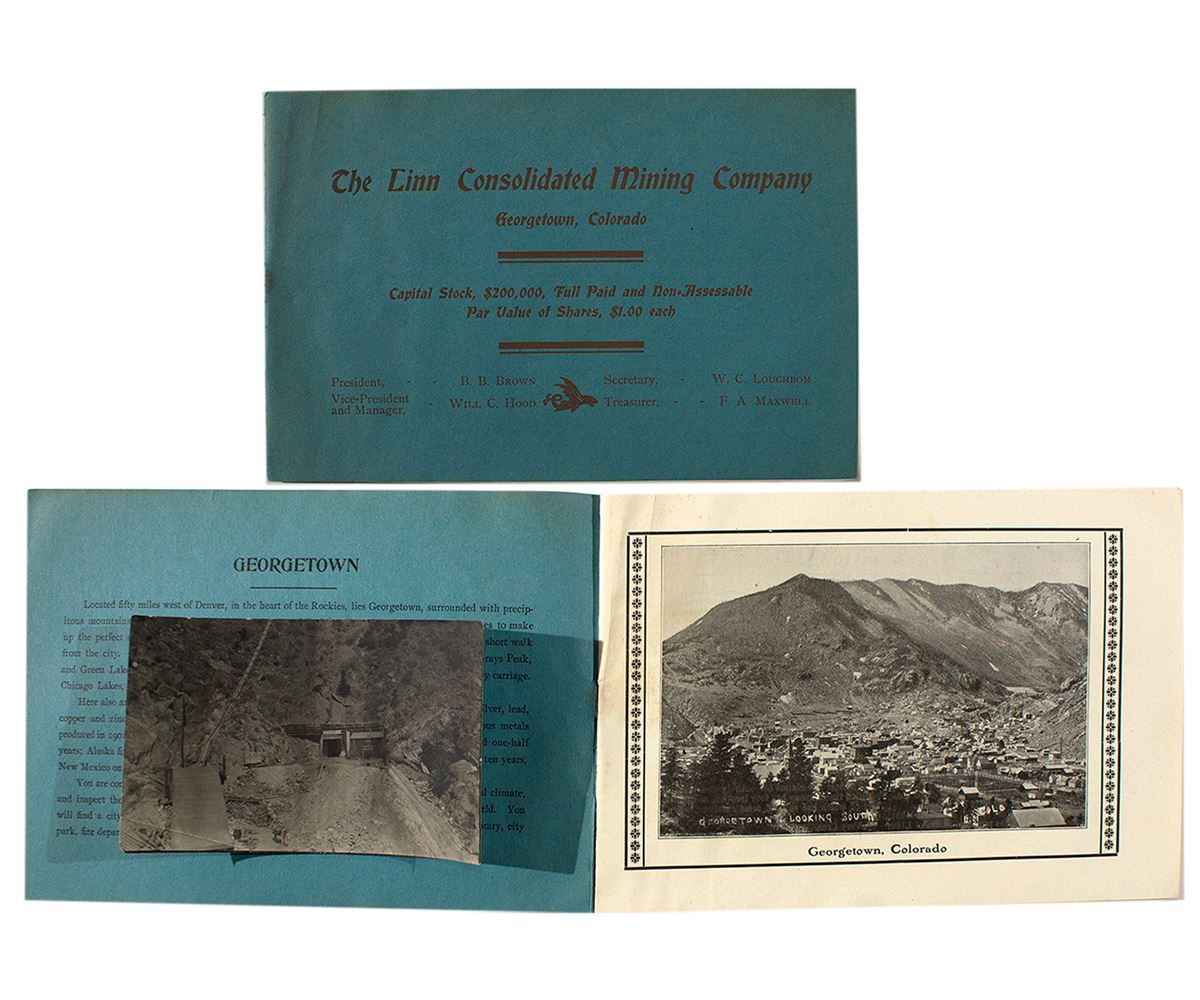 8 pages. Five photographs. One personal photograph (3 x 5.5") of the Linn Mine entrance was tucked inside the front cover. Slight wear throughout.