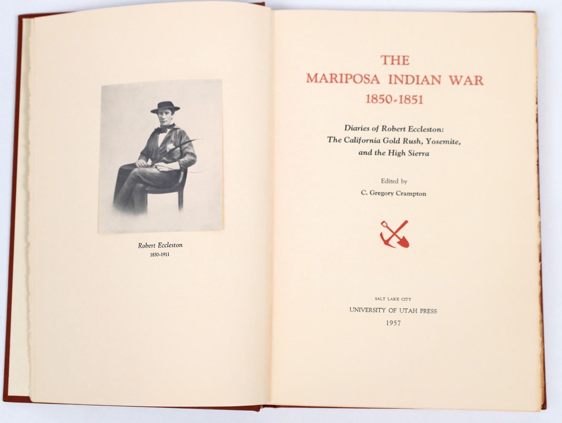 The Mariposa Indian War 1850-1851, 1957 printing. Action in the Mariposa mines when settlers intruded onto Indian land. 168pp with index and foldout map.