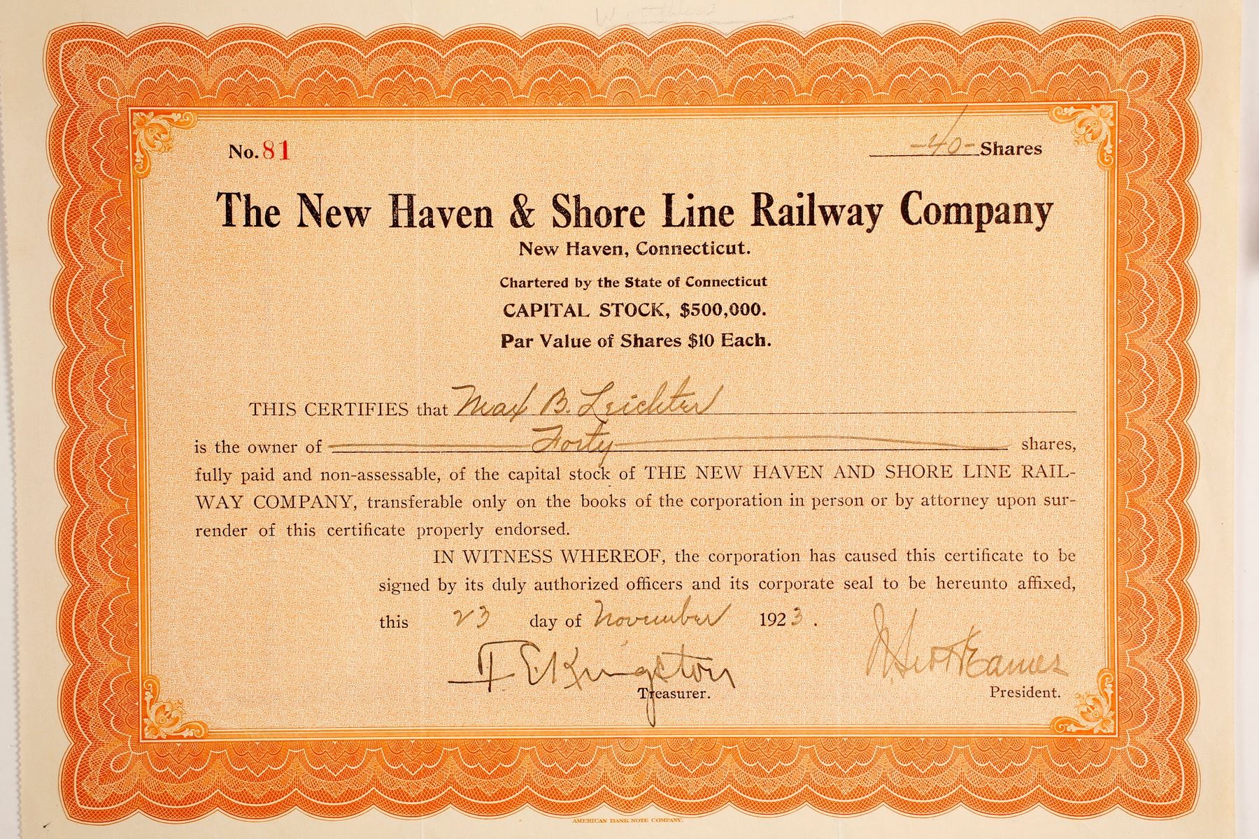 Incorporated 1923 in the State of Connecticut. I/U #81 for 40 shares @ $10 par, issued Nov 13, 1923, signed N.S Eames president, orange, with orange underprint "United States of America", embossed seal, American Bank Note Co. printer. EF State: Connecticut City: New Haven Date: 1900's