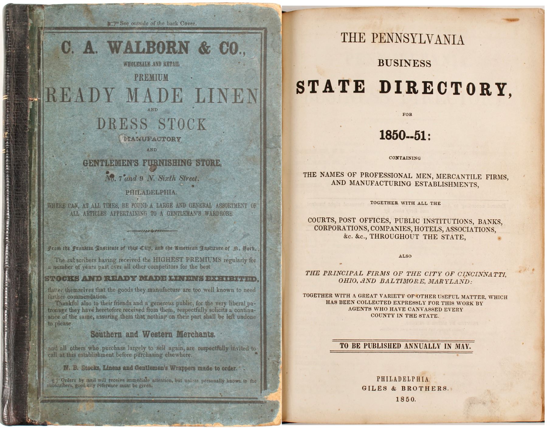 The Pennsylvania Business State Directory for 1850-51, published by Giles & Brothers, 1850.