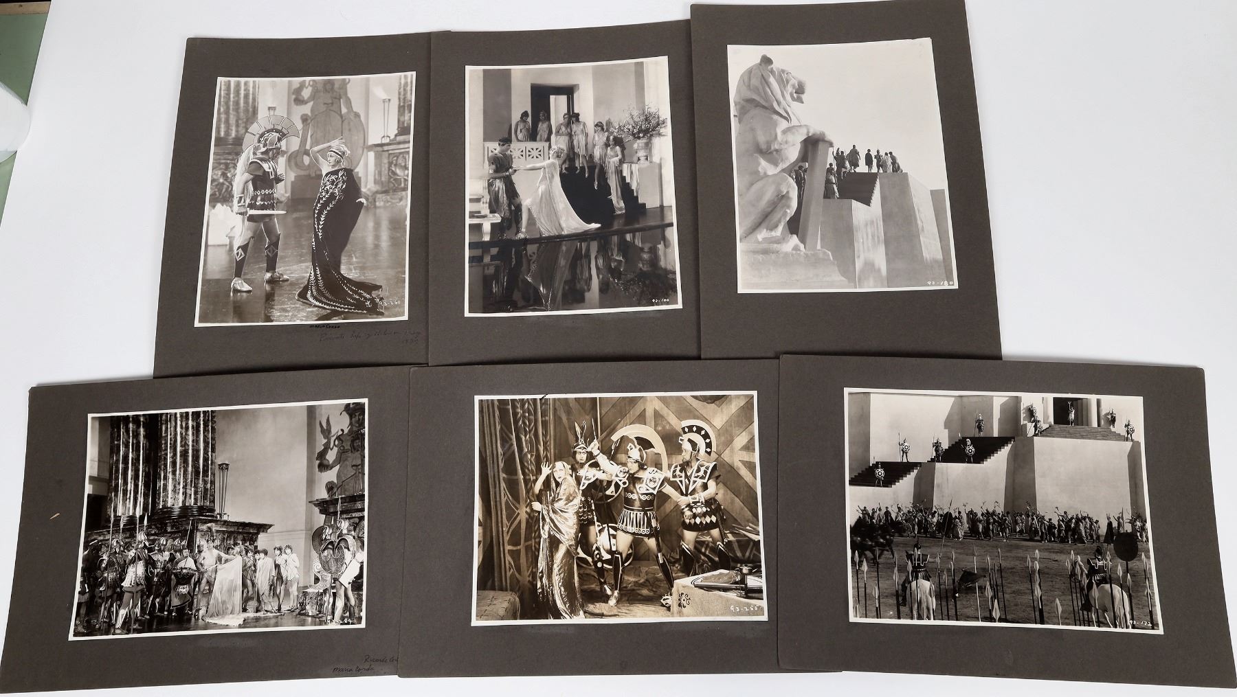 Six mounted photographs from the movie, "The Private Life of Helen of Troy." This 1927 film was based on the book of the same name written by John Erskine in 1925. It starred Maria Corda as Helen and Ricardo Cortez as Paris. Each photograph is 7.5 x 9.5 inches, mounted, overall size is 10 x 13.75. Good condition. California Hollywood