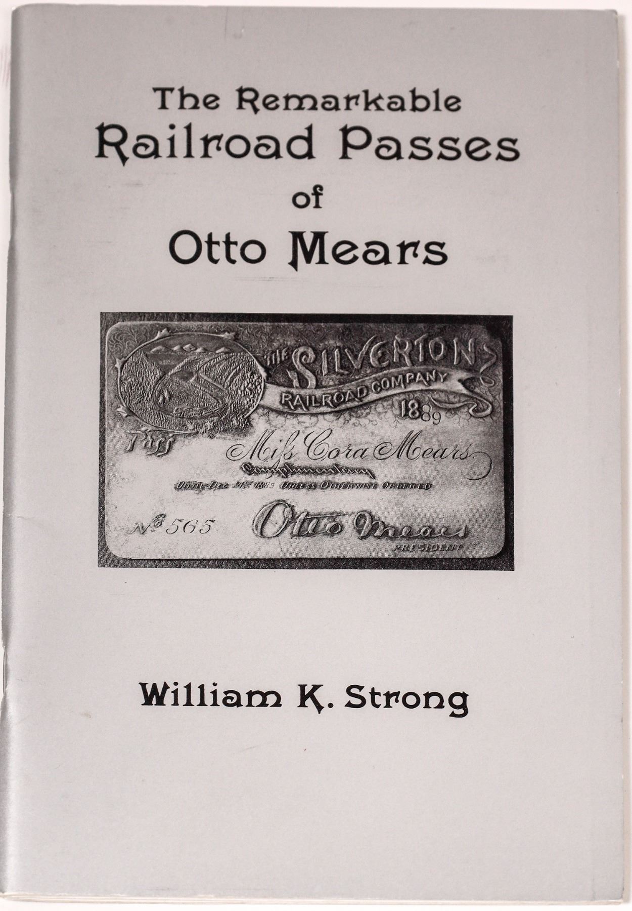 The Remarkable Railroad Passes of Otto Mears by William K. Strong. Published by the San Juan Book Company, Silverton, Colorado, 1988.35 page. 5.5 x 8.5 inches. Good condition.