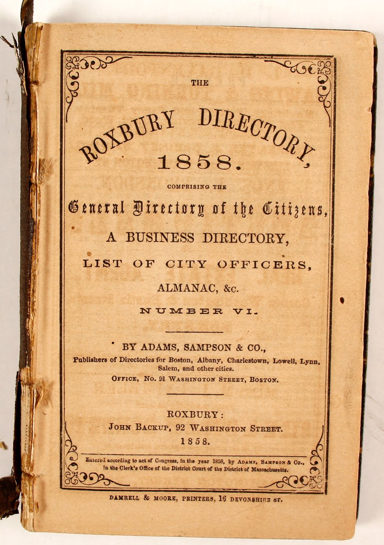 The Roxbury Directory, 1858, Number VI, by Adams, Sampson & Co._x000D_