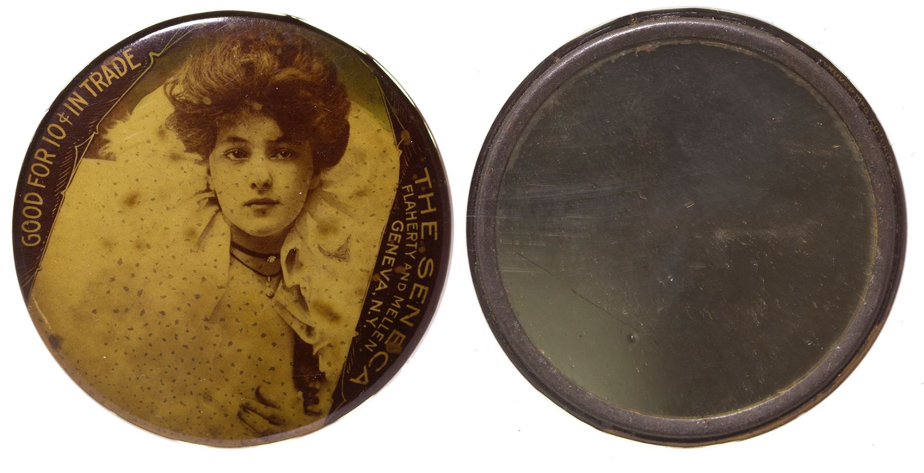 NGC certified genuine. The Seneca / Flaherty and Mellen / Seneca, N.Y. / Good For 10c In Trade. 2 1/4 inches. Date: Location: Geneva, New York HWAC# 48252