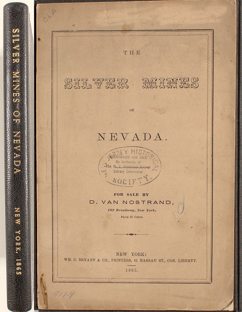 Paher 229. Paper covers, only light wear, in custom slip case. 78pp plus folding map by E. W. Perry. The publication of this rare pamphlet/booklet coincides with the push for investment in Reese River Mines in Central Nevada by New York money. The first ten pages discusses the California mines and the great Comstock Lode. It then moves slowly into discussion of the Reese River discoveries, with citation after citation from the Reese River Reveille. Fairly rare.City: County: State: NVDate: 1865