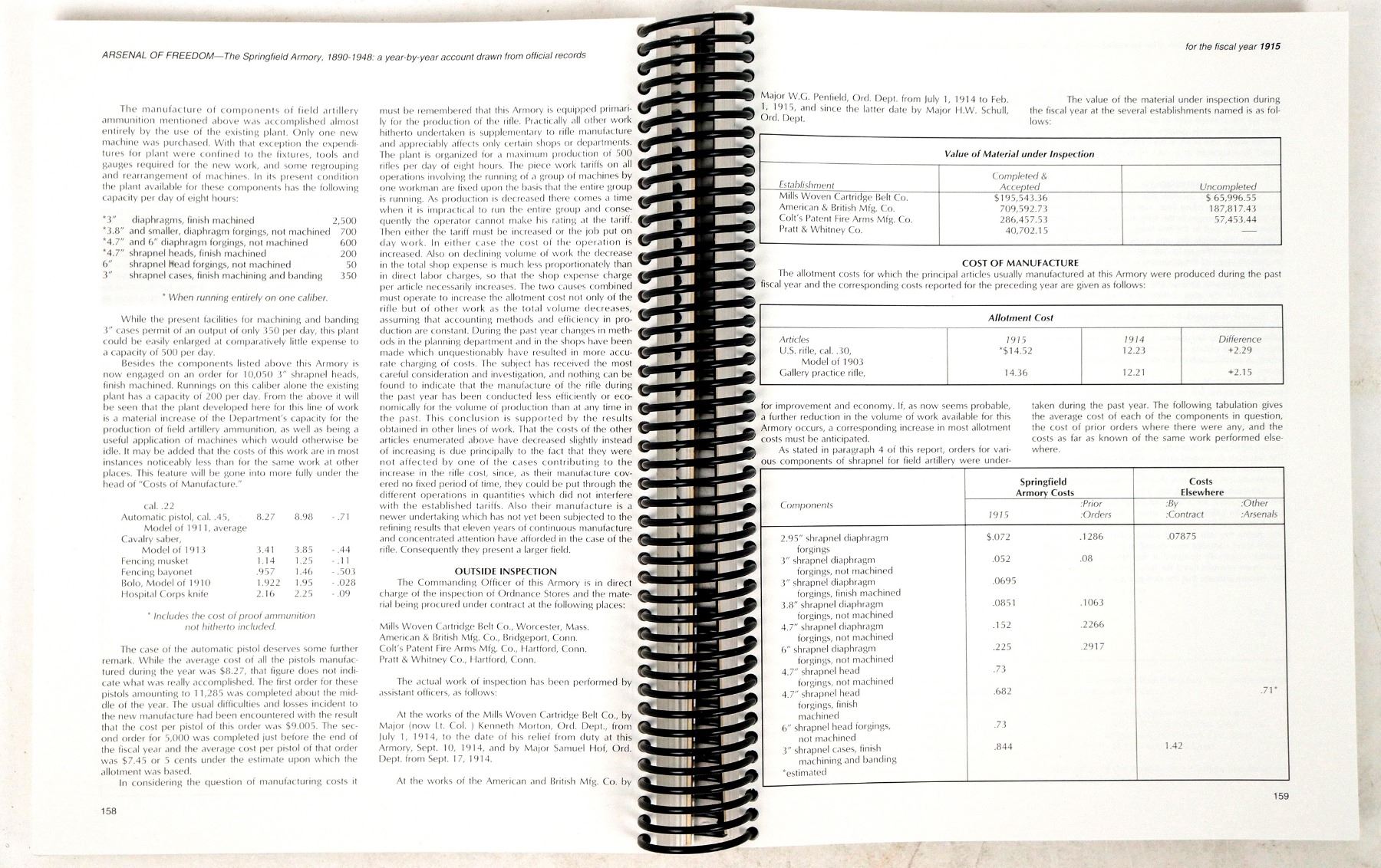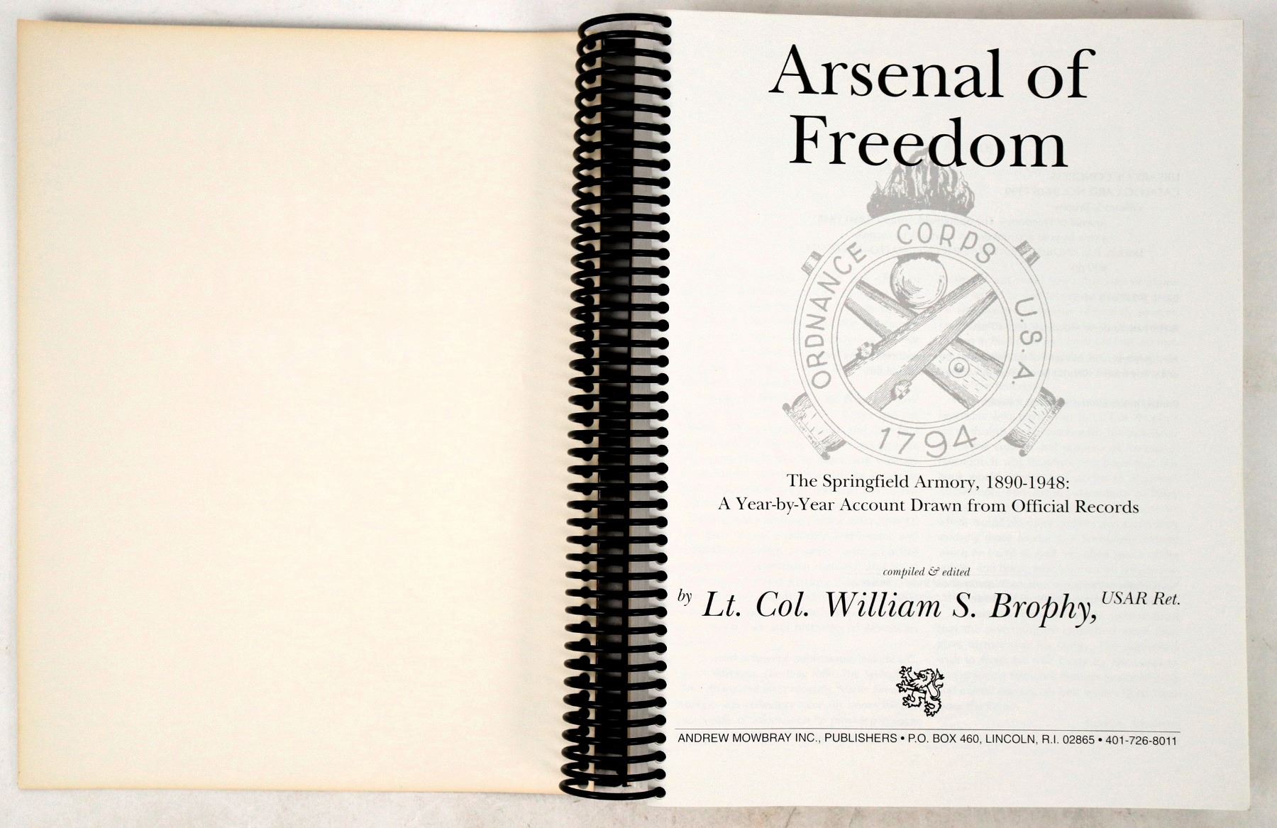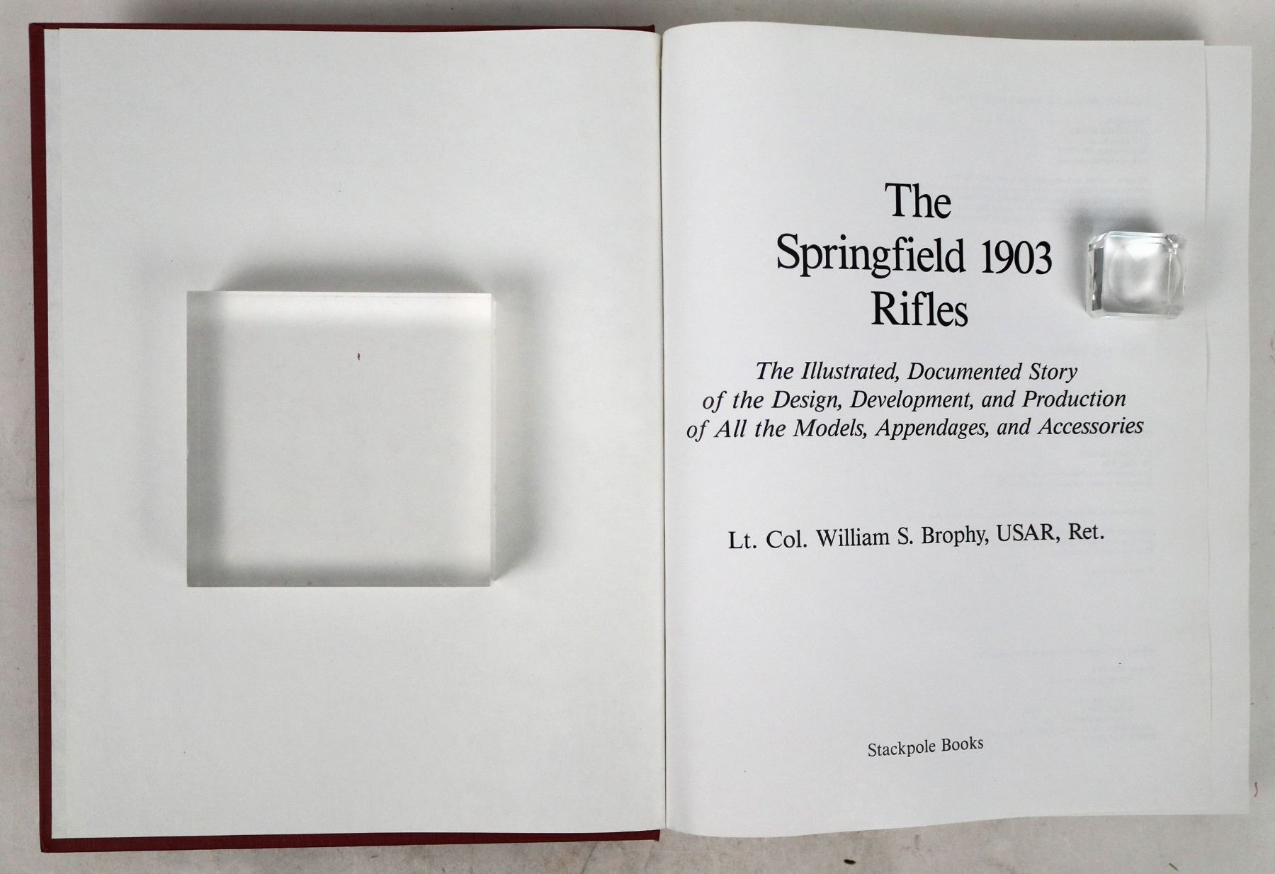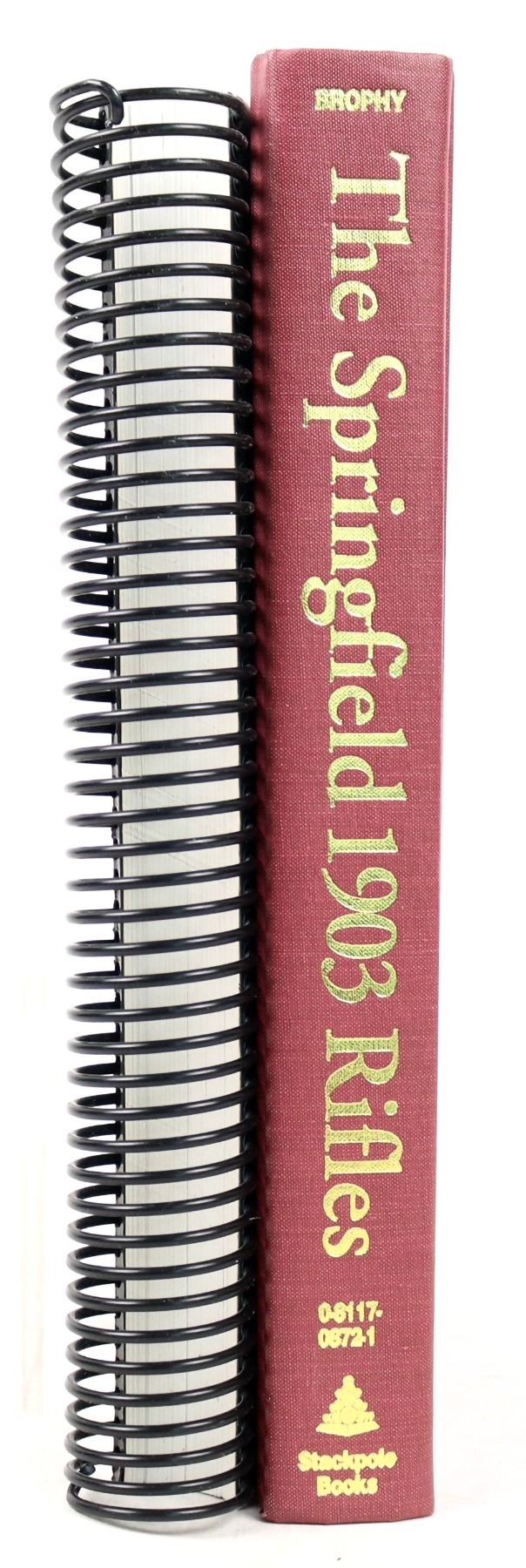 These two books by author Lt. Col. William Brophy cover the birth of the 1903 Springfield rifle. "The Springfield 1903 Rifle" is hardcover at pp. 607. Red canvas with gold lettering no DJ. Excellent condition. "The Springfield Armory 1890-1948" at pp.400 is spiral bound with a green cover. It's about the accounting of manufacturing with amazing productivity improvements during 1942. In excellent condition. Please see photo for details.