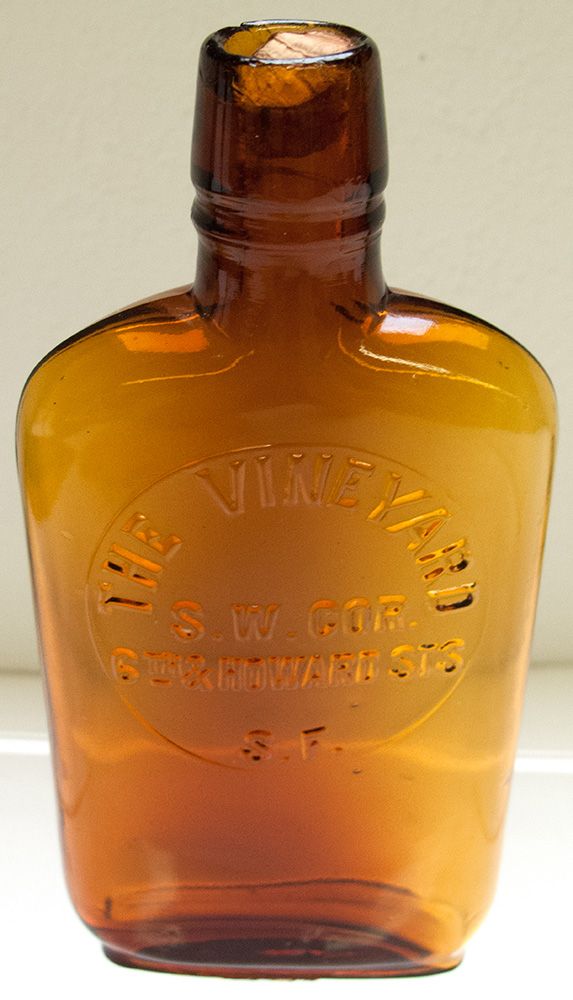 Seldom - if ever - seen whiskey flask. Located on the southwest corner of 6th and Howard Street. In near mint condition. A nice find!City: San FranciscoCounty: San FranciscoState: CADate: