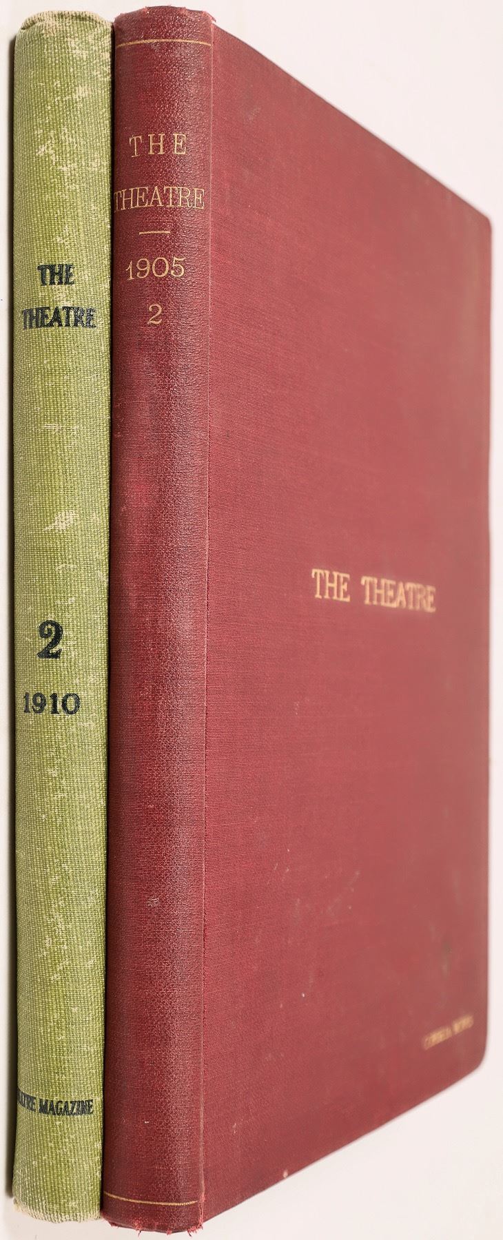 2 bound volumes of The Theatre magazine, 1905 and 1910, both are Vol II for their year. Bindings appear sound but are not.
