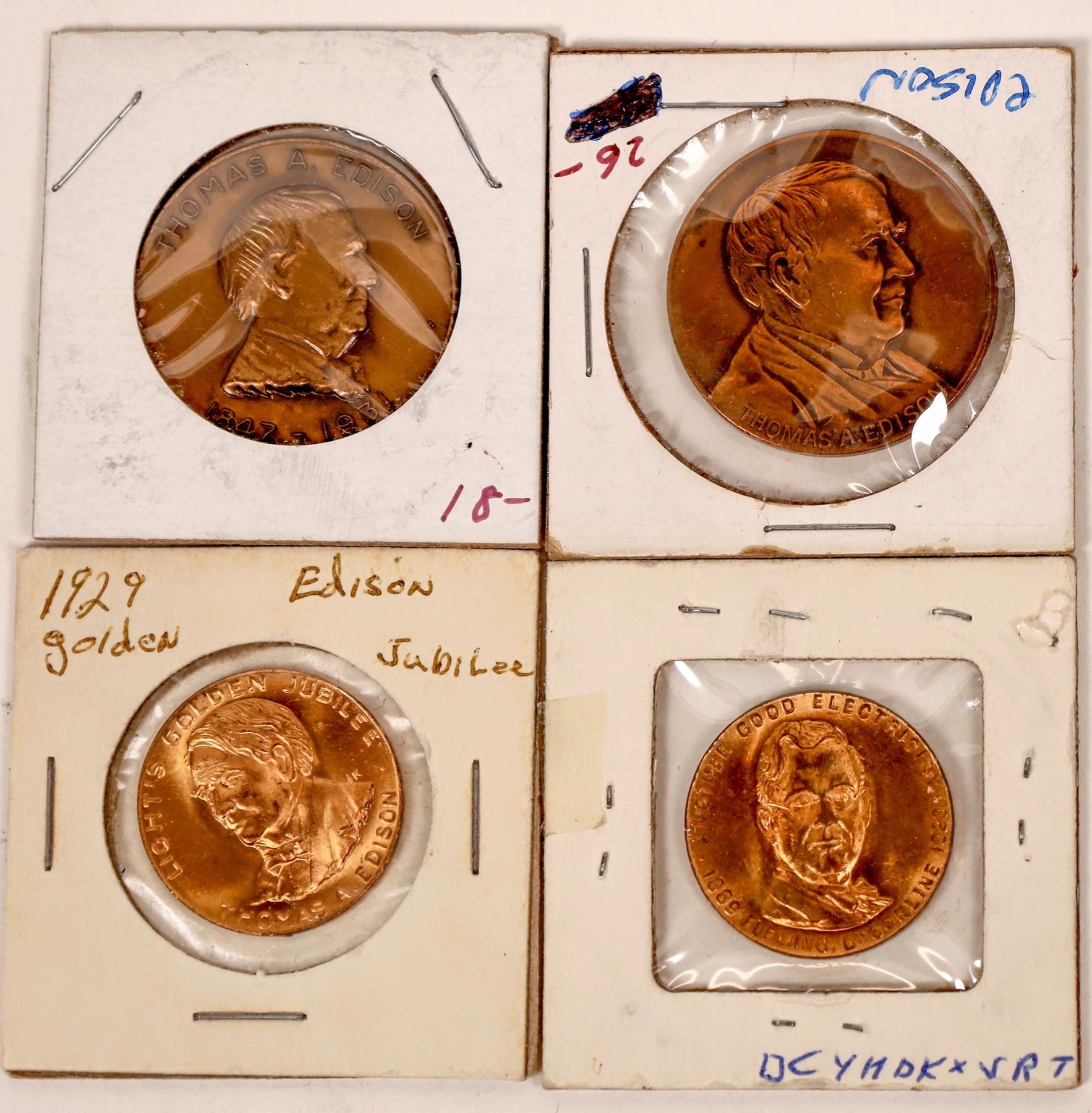 Lot of four Thomas Edison medals: two 1929 Light's Golden Jubilee; one San Diego Gas and Electric Company; one Ft. Myers pageant of light.