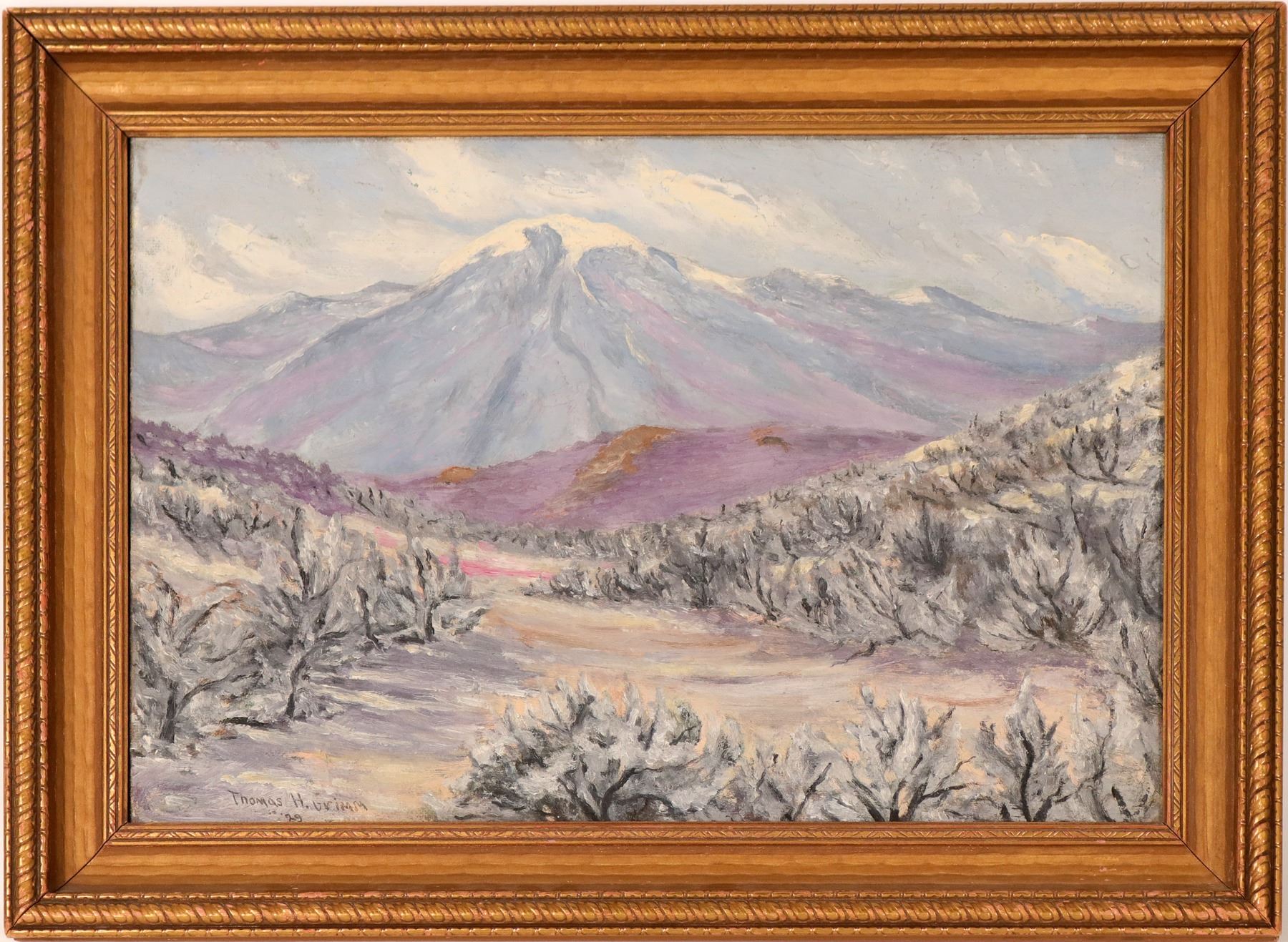 15.5" x 22" framed oil. Signed lower left, Thomas H. Grimm, 1929. Left-handed slant. This view may be from somewhere near the Jumbo Grade. Grimm not listed in McFadden.