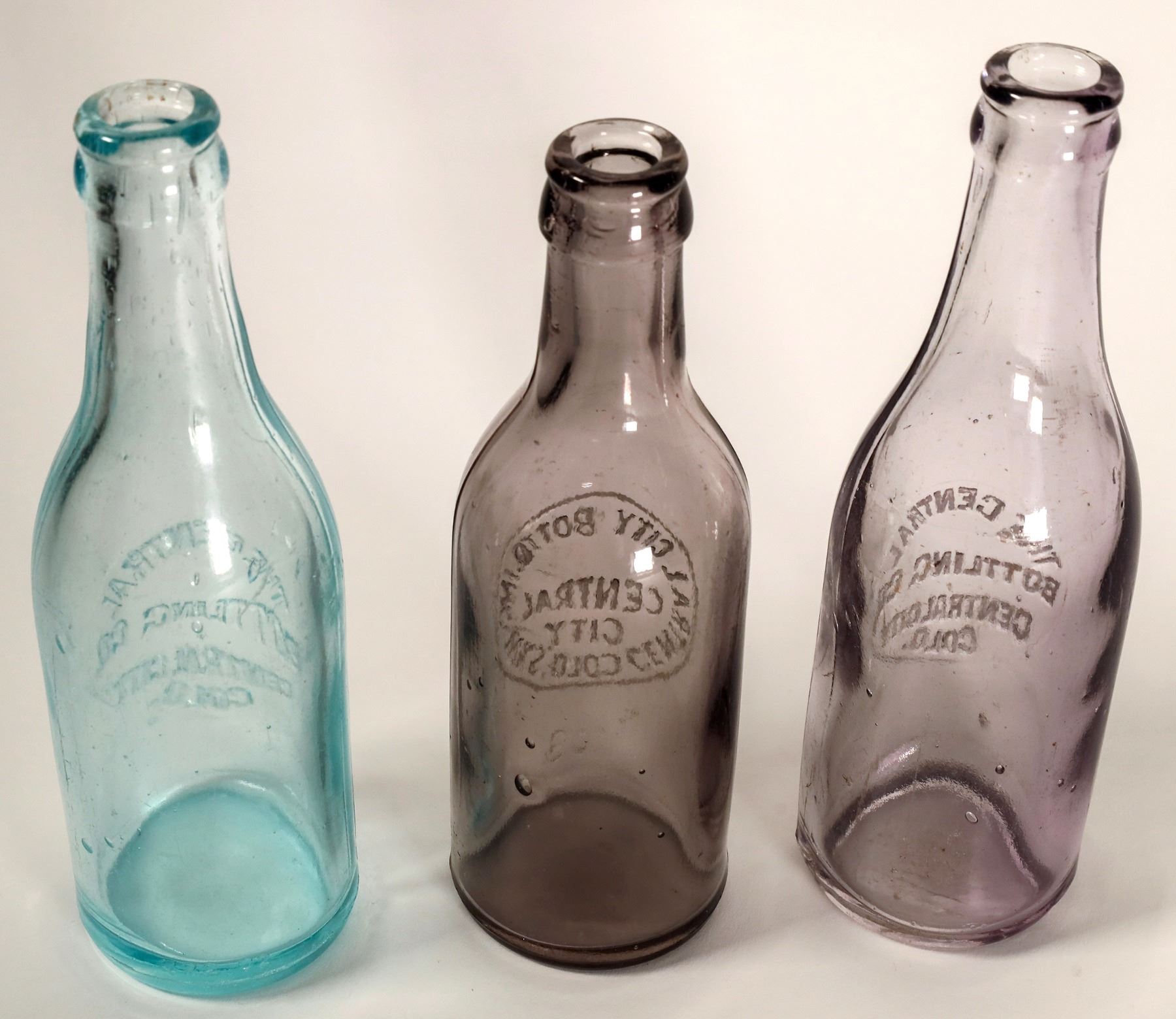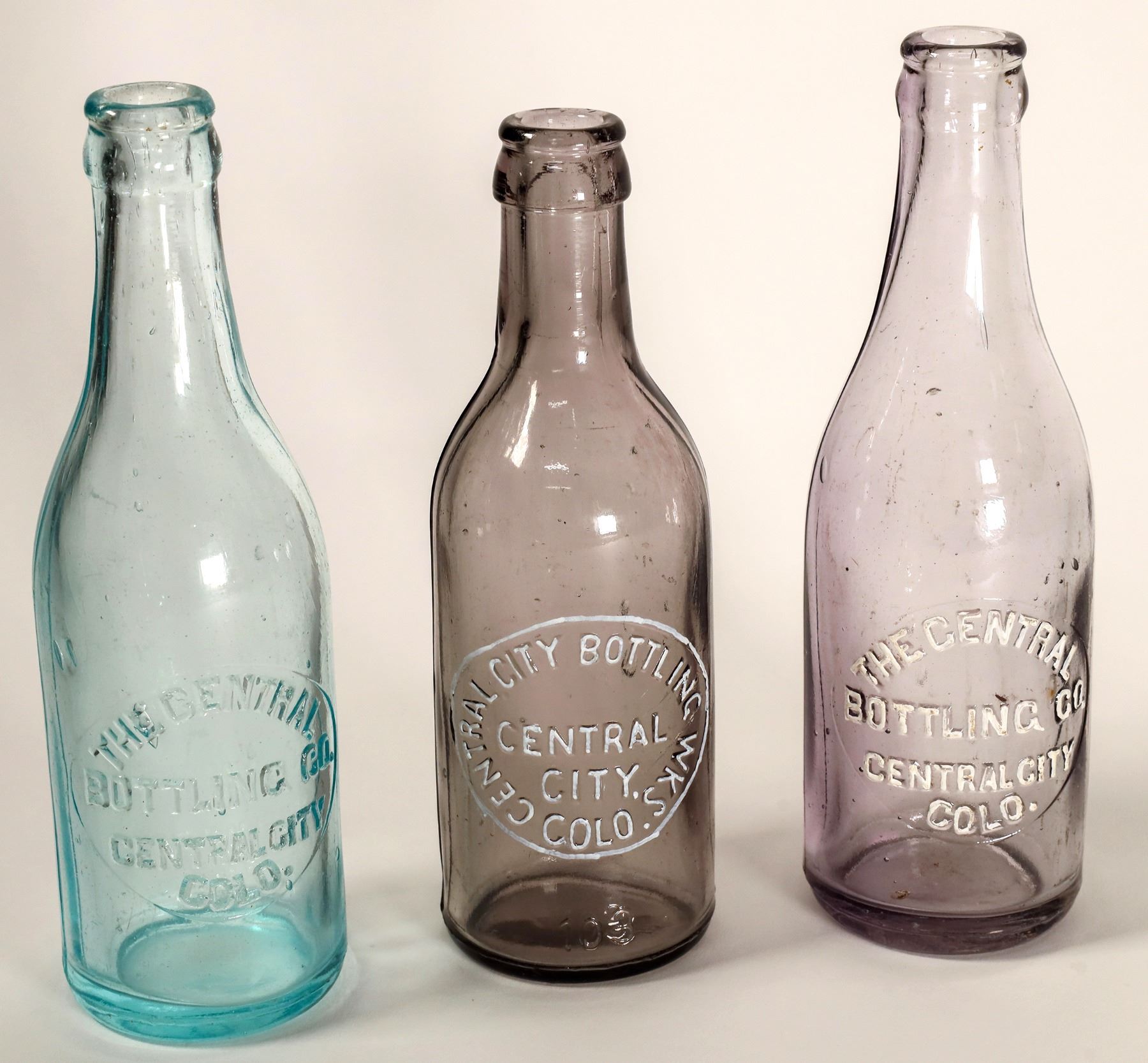 1) Fabulous Central City Bottling Works, Central City, Colo. 103 written on the bottom. Bubbles. 2)The Central Bottling Co., Central City, Colo. Bottom says 322.02. Very nice. 3) Same as above.