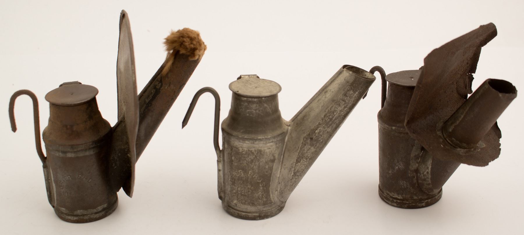 Lot of three different mine teapot lamps. Grier Bros., Pittsburgh. These lamps do not have the classic star logo, but all are different in design. These may be early Grier models. State: City: HWAC#: 49015 Date: