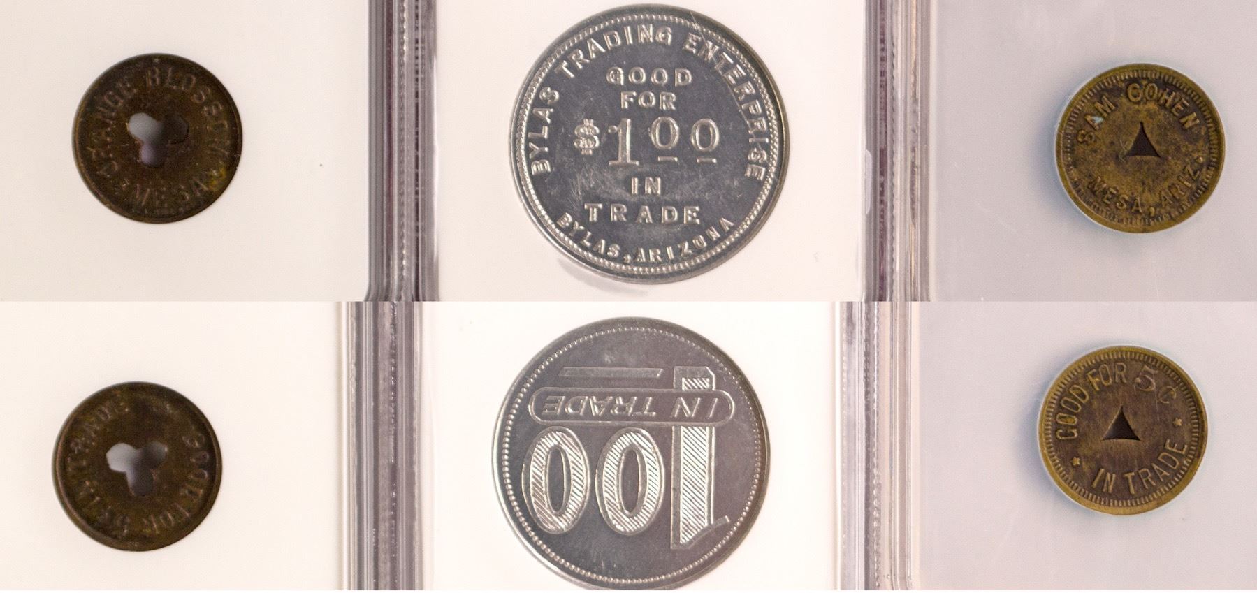 Lot of three: Sam Cohen, Mesa; genuine; Orange Blossom, Mesa, AU 53; Bylas Trading Enterprise, MS 63. State: Arizona City: Bylas & Mesa Date: ID# 77711