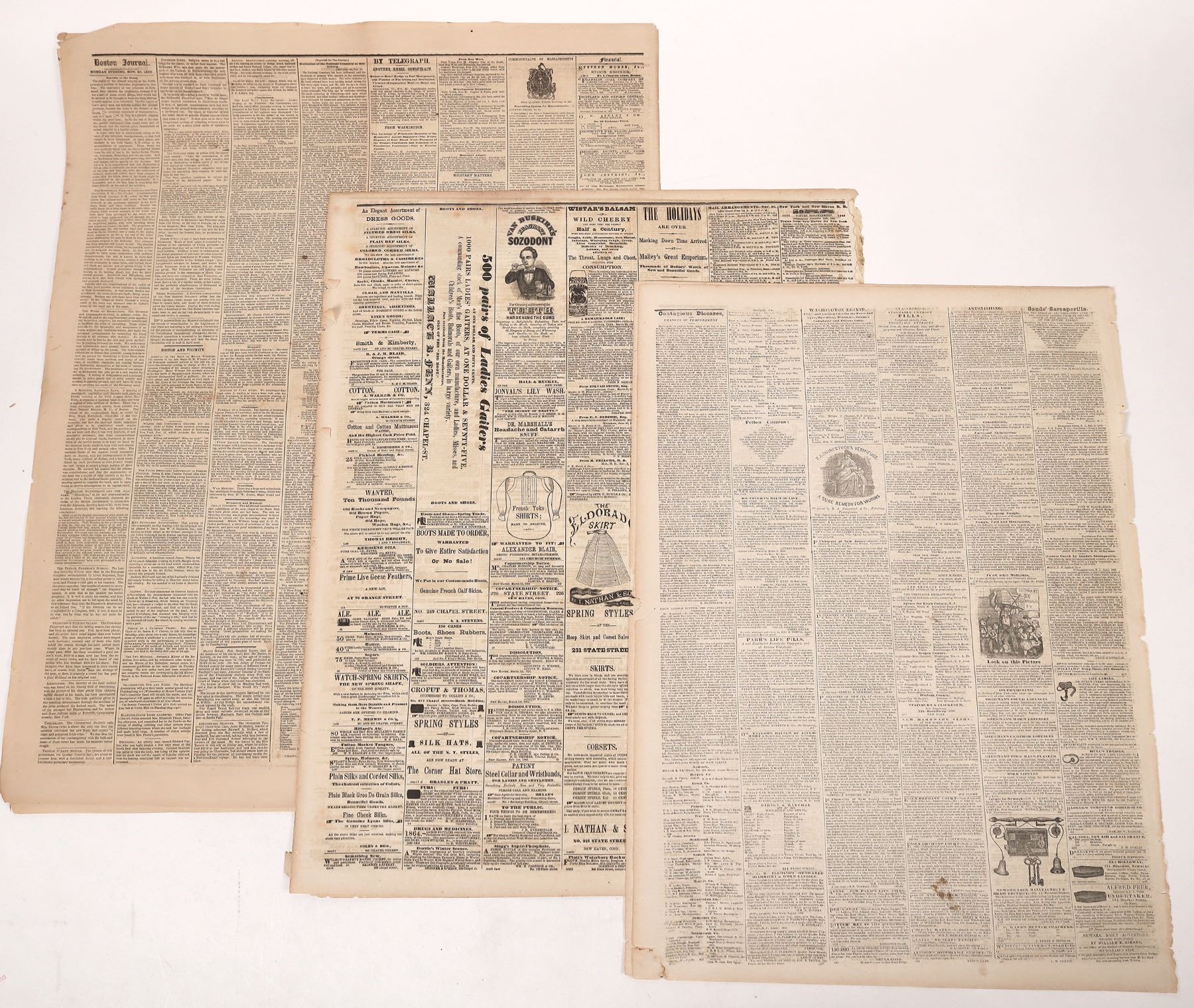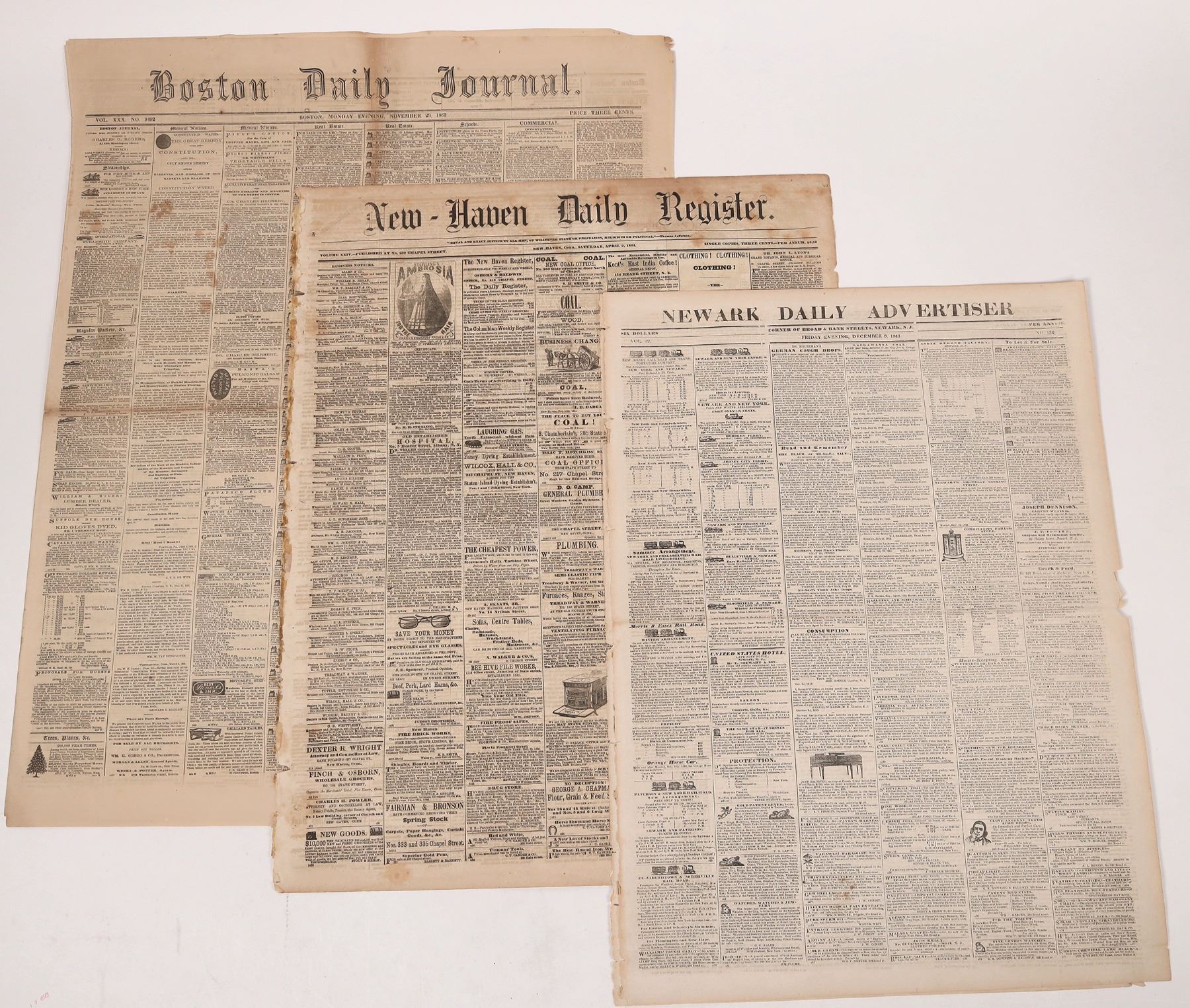 1) Newark Daily Advertising. December 8, 1843, Arrival of the steam packet Acadia for example. 2) 1863. Boston Daily Journal. The arrival of the food shortage in the South is not helping or soldiers who have been capture. 3) 1865. New Haven Daily Register. Get the democrats out to vote!