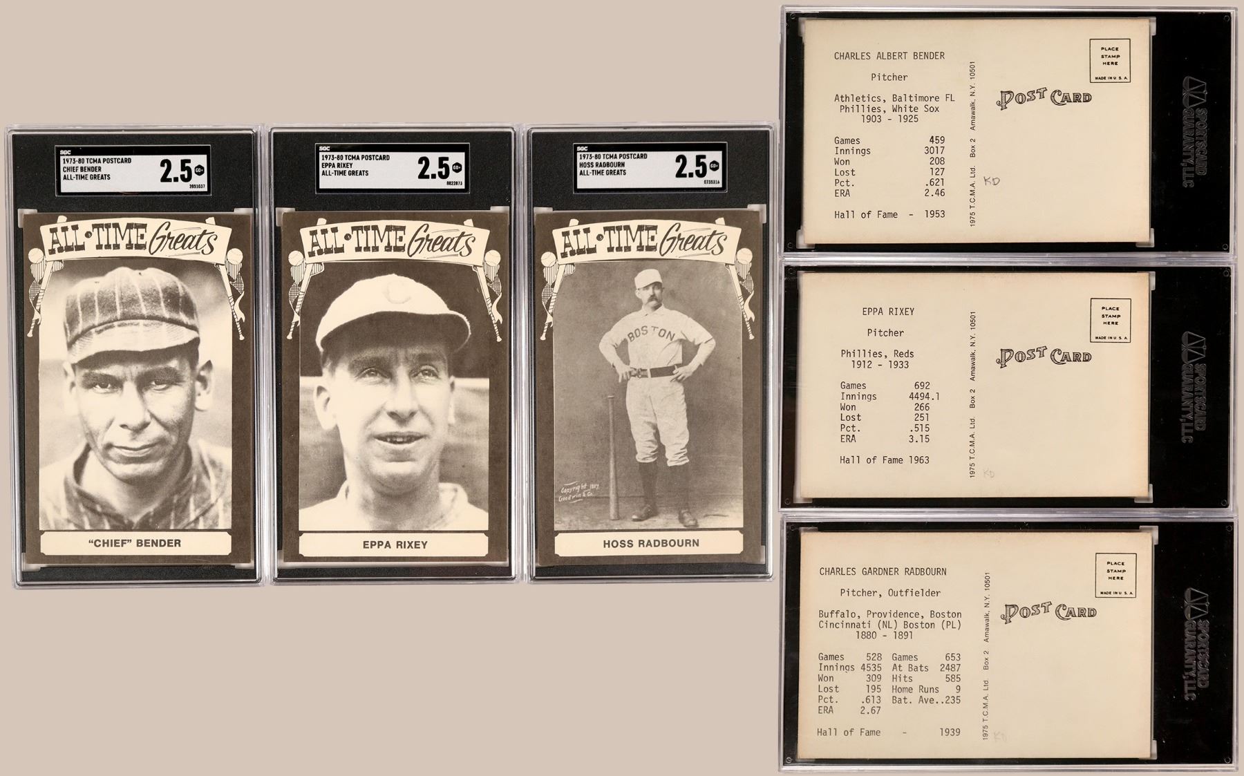 This is a lot of TCMA postcards featuring three lesser known Hall of Fame baseball players Chief BenderEppa Rixey and Hoss Radbourn. All cards are in good condition. See photos for more detail.
