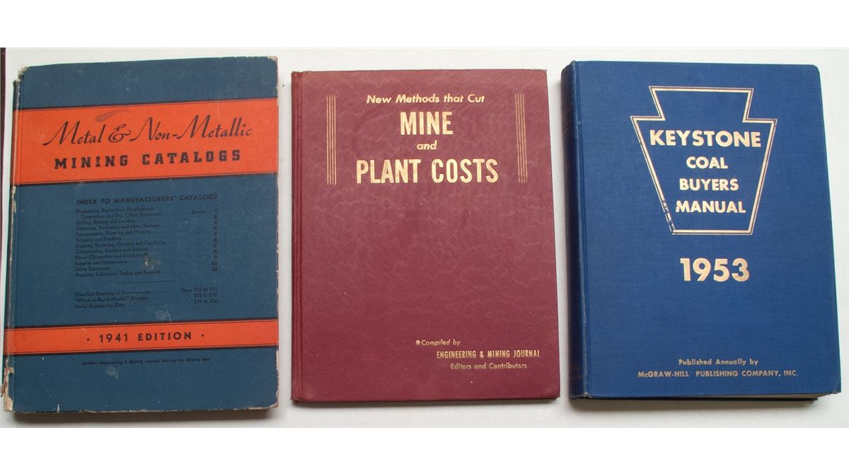 Lot of three. 1) Metal and Non-Metallic Mining Catalog. 1941. 2) Keystone Coal Buyers Manual. 1953. 3) Mine and Plant Costs. Compiled by Engineering & Mining Journal. c1940.