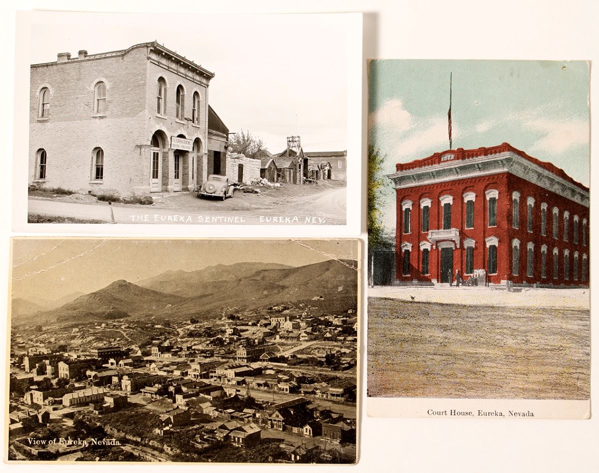 Lot of 3: Court House; overview of town; The Eureka Sentinel Building. City: Eureka State: Nevada Date: ID# 44749