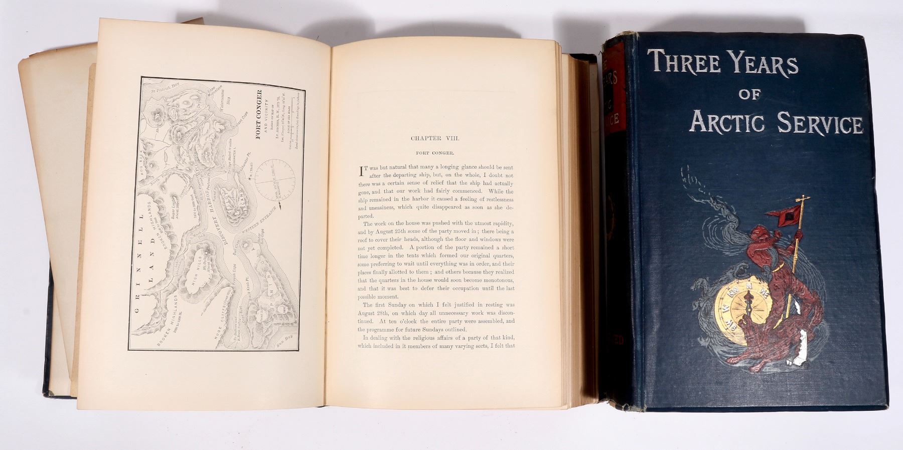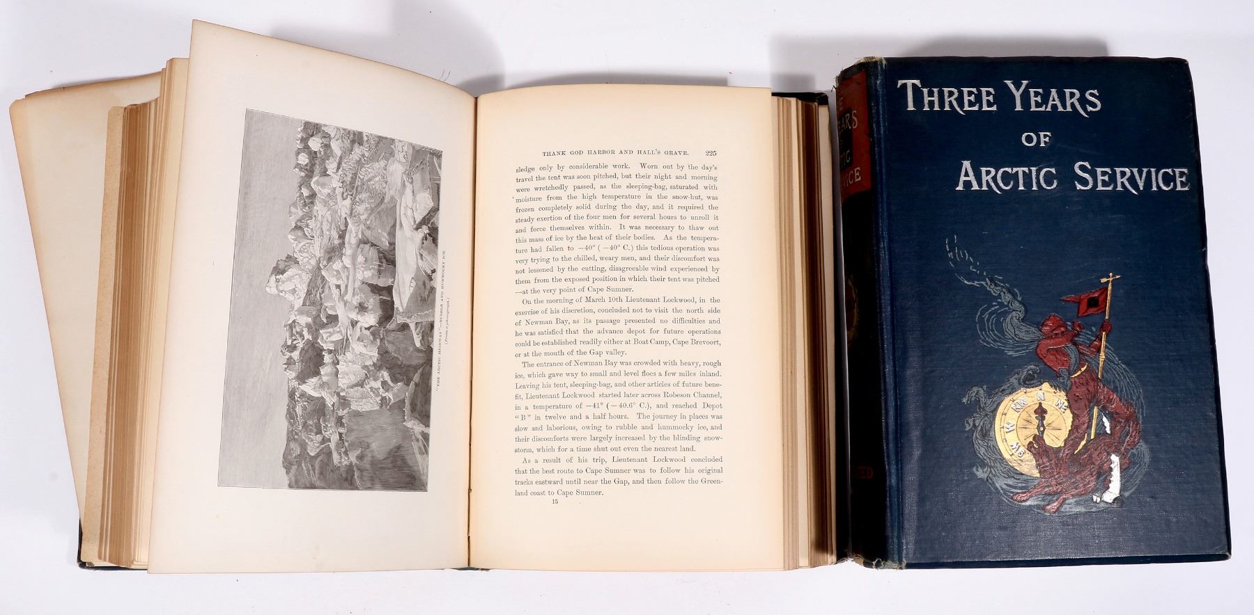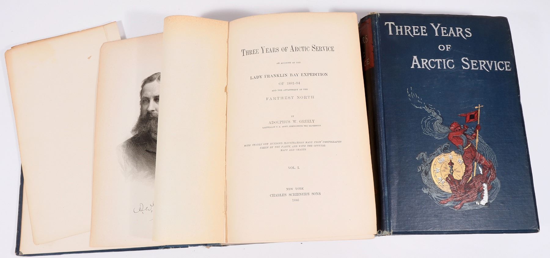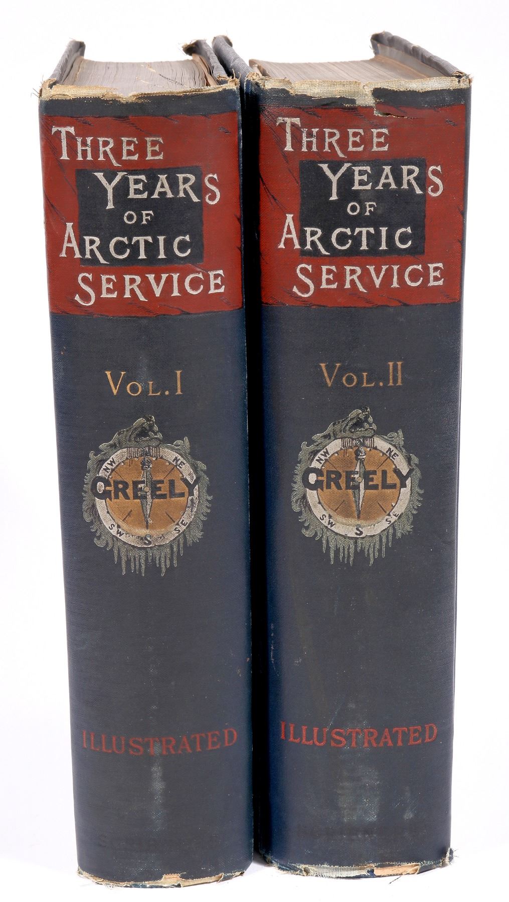Three Years of Arctic Service Vols. 1 & 2 by Greely, An Account of the Lady Franklin Bay Expedition of 1881-84 and the Attainment of the Farthest North. 1886. The story of Shackleton and the disaster filled South Pole exploration. Atrractive bindings. Vol 1 has mostly detached cover, vol. 2 has detaching cover. Please inspect