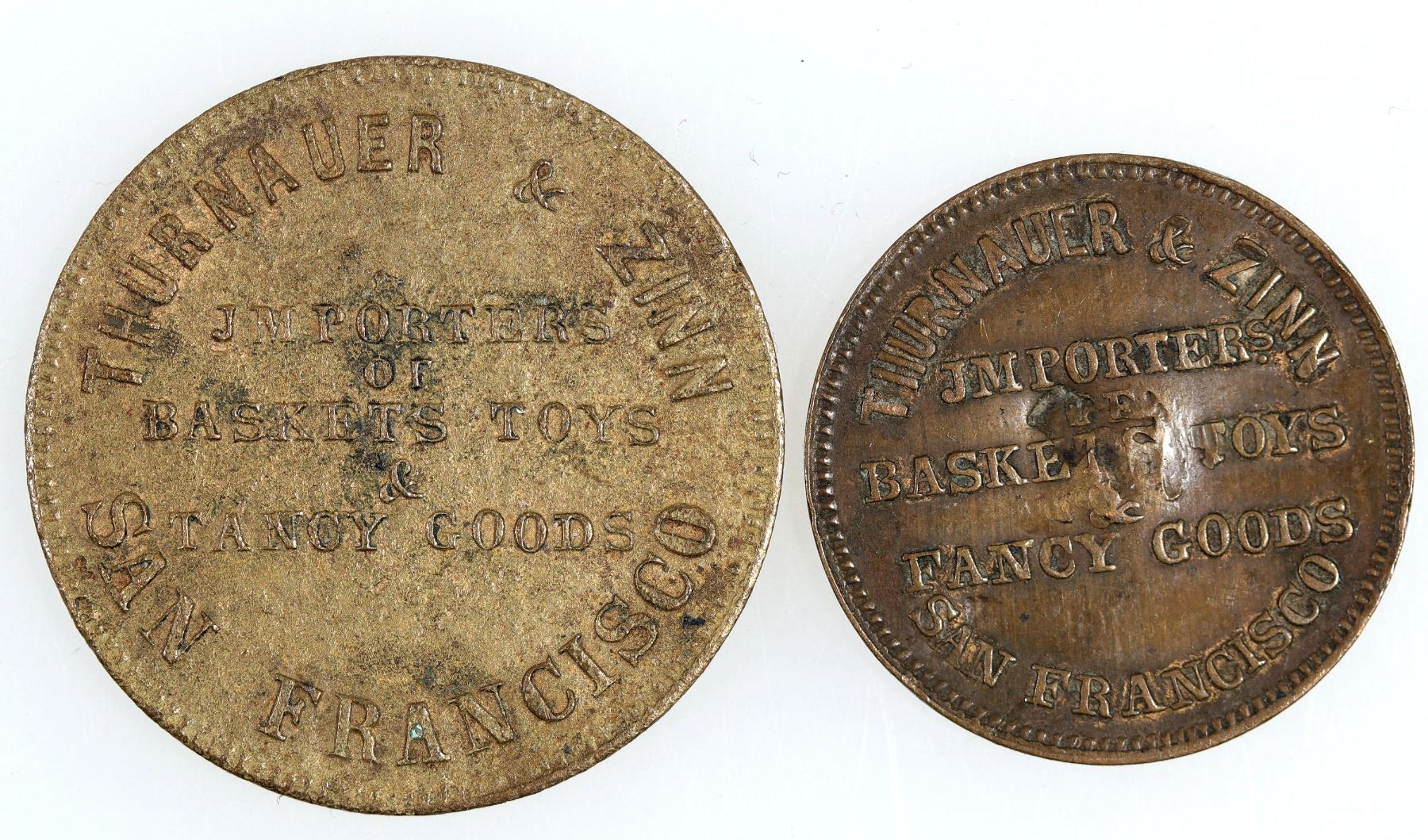 Lot of 2x Liberty head Spiel Marke store cards from Thurnauer & Zinn importers of baskets, toys and fancy goods. San Francisco California