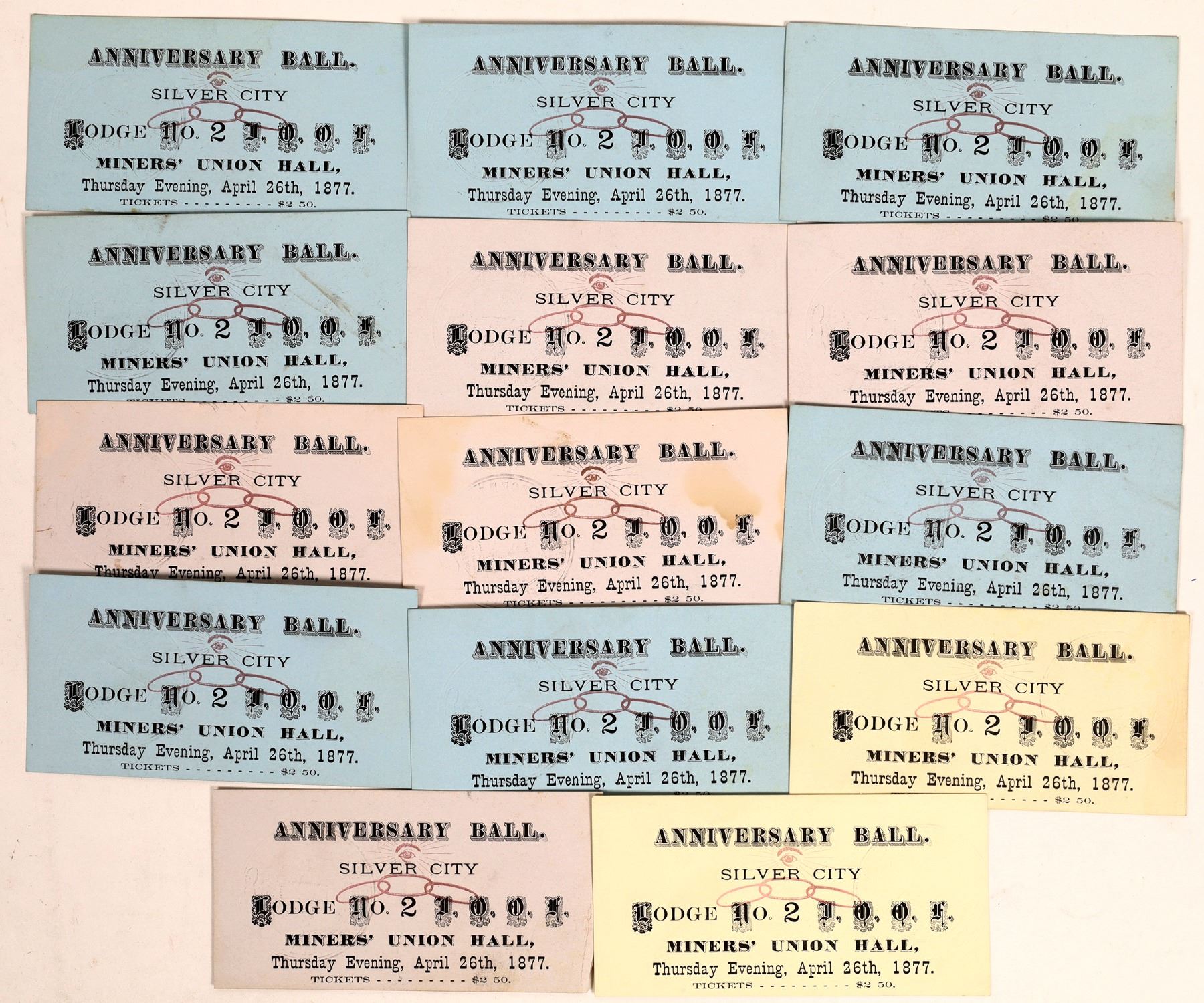 Lot of 15. Anniversary Ball held in Silver City held at the Moners’ Union Hall by IOOF lodge No. 2. In very good condition