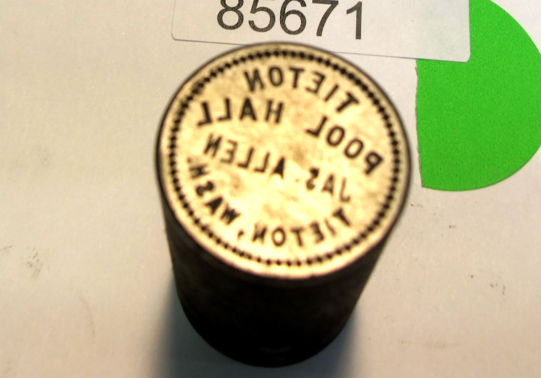 1 token die self identified from Tieton, WA. 24mm: Tieton Pool Hall. Northwest Territorial Historical Token Die Collection State: Washington City: Tieton Date: c1903-1950 HWAC# 85671
