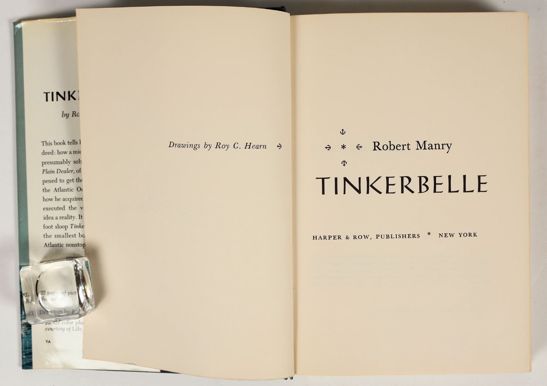 A signed first edition copy of 'Tinkerbelle: The story of the smallest boat ever to cross the Atlantic nonstop' by Robert Manry, a memoir. Published 1965 by Harper & Row Publishers of New York. 254 pages, illustrated throughout. Great condition. 6"x8.5"x1.25".