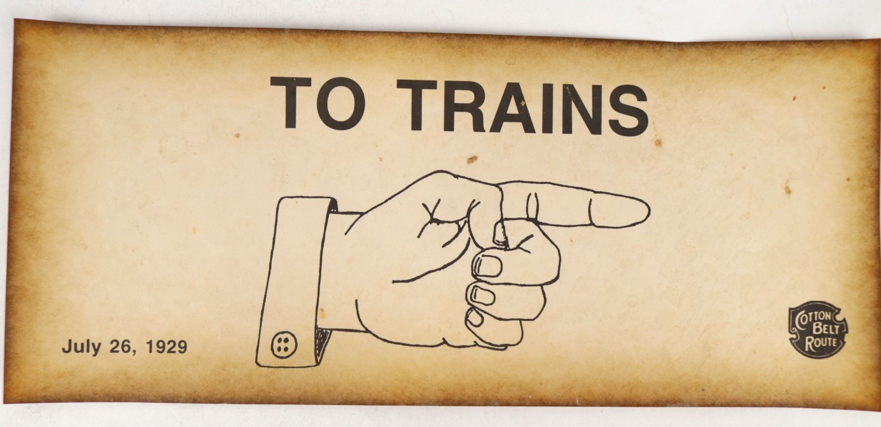 Station Sign Reading "To Trains." It measures 11"x 5" and is issued by The Cotton Belt Route. In nice condition. Please see photos for more details.