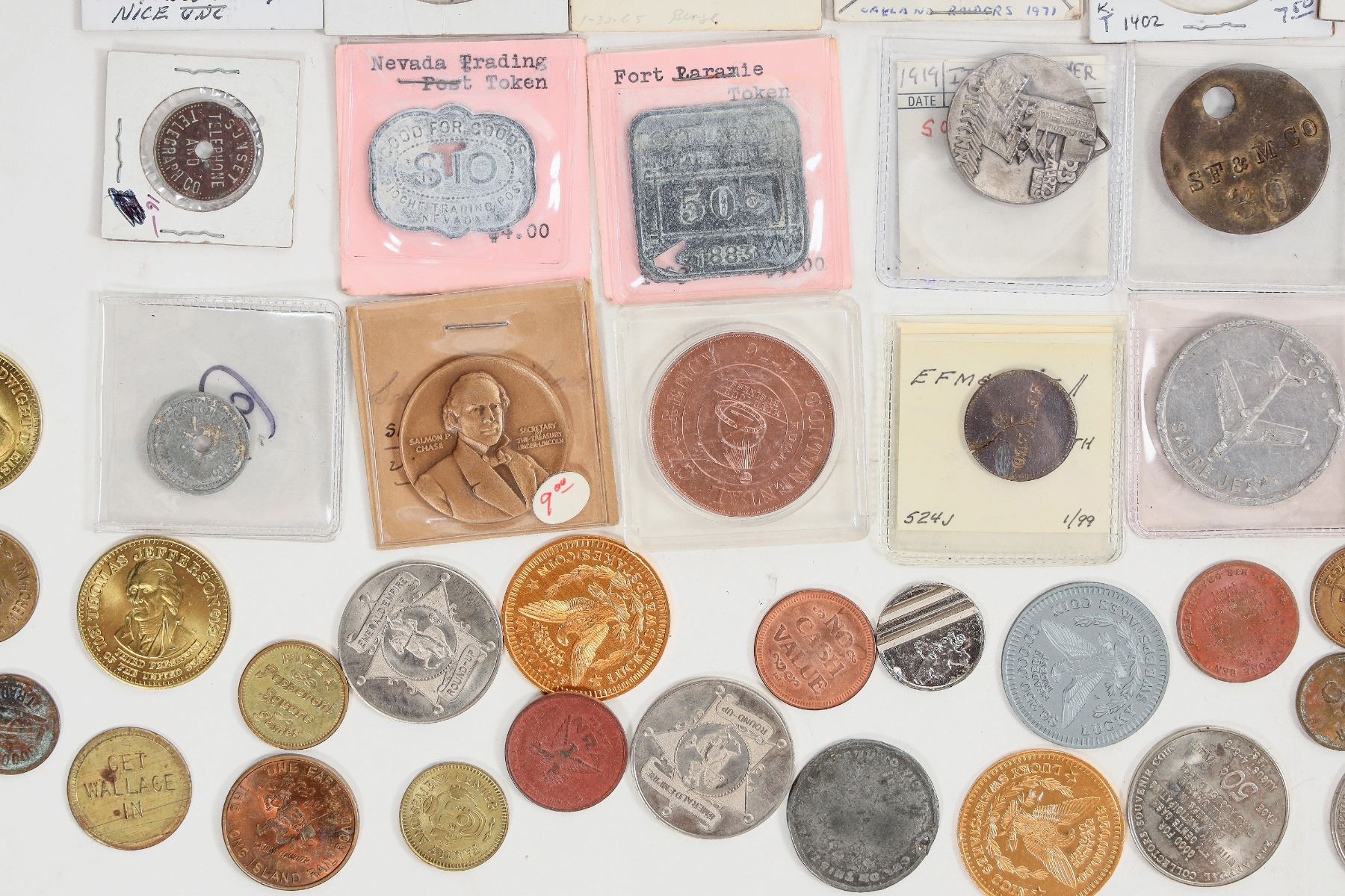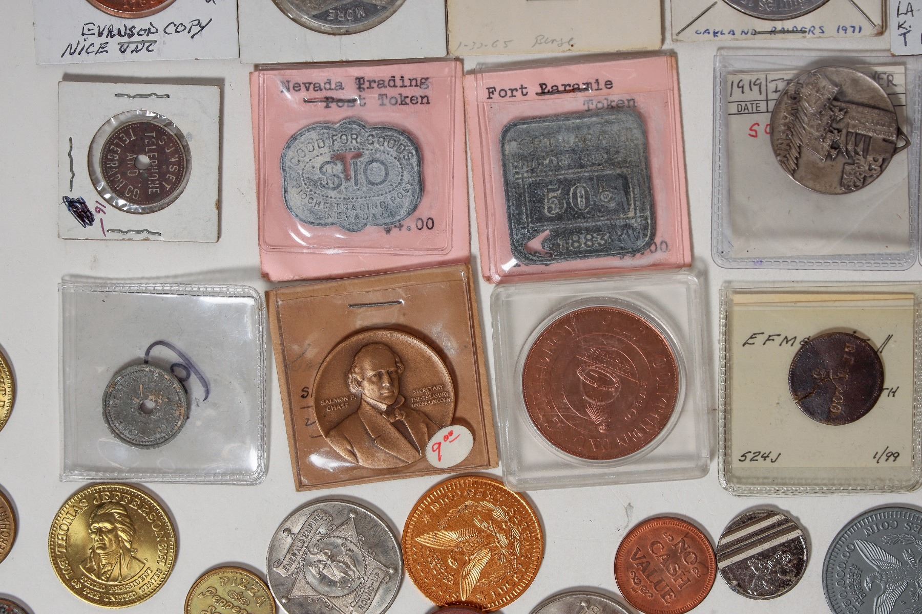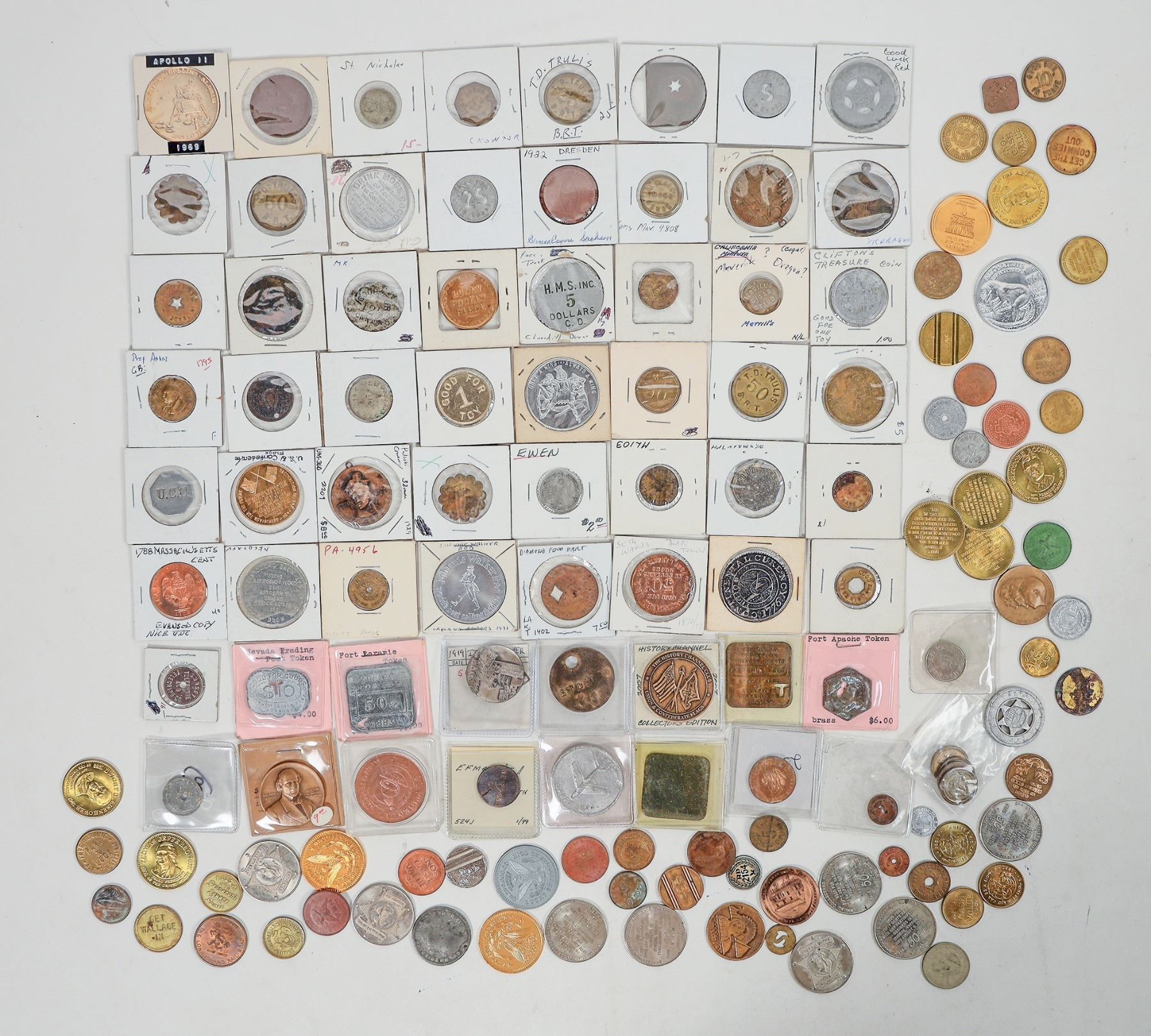 Lot of over 130 tokens and medals. U.S. Grant; Sunset Telephone and Telegraph; Johnny Walker Red; Salmon P. Chase; Fort Apache; 1923 Simir Pulaski; 1940 Stanley Abel; Fort Laramie and many more.[