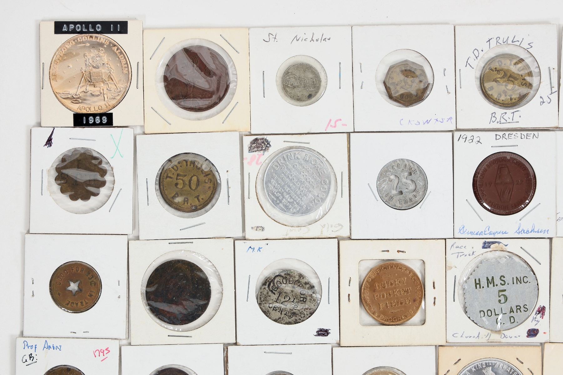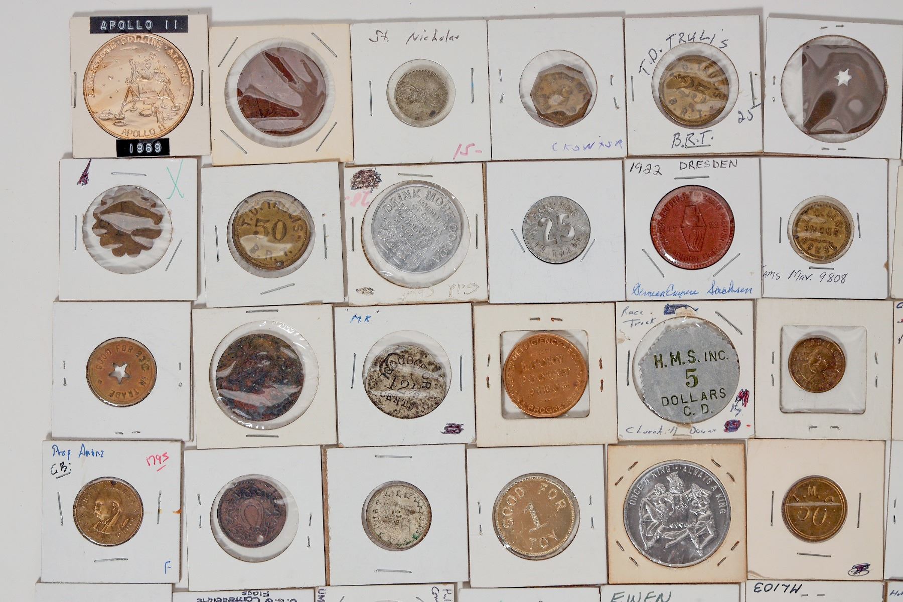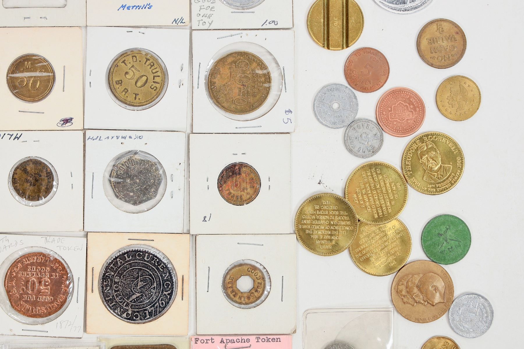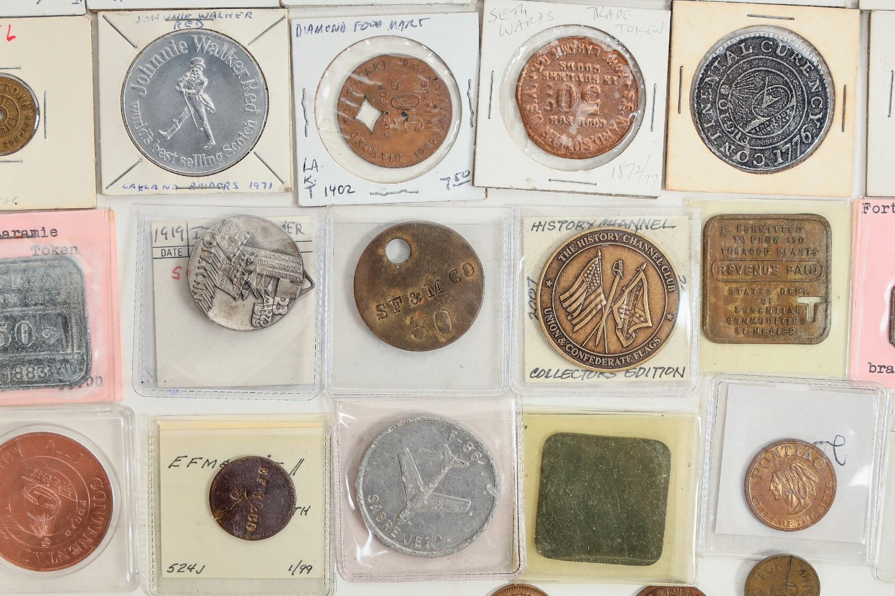 Lot of over 130 tokens and medals. U.S. Grant; Sunset Telephone and Telegraph; Johnny Walker Red; Salmon P. Chase; Fort Apache; 1923 Simir Pulaski; 1940 Stanley Abel; Fort Laramie and many more.[