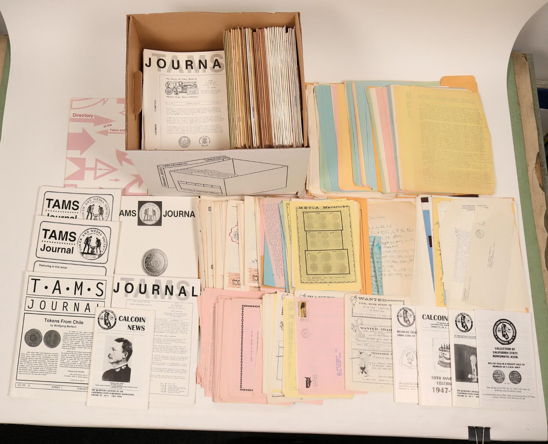 This a Token and Medal Society (TAMS) journals library; over 90-100 issues plus METCA correspondence letters as well. Issues from 1984-1996. Please see the photo for details.