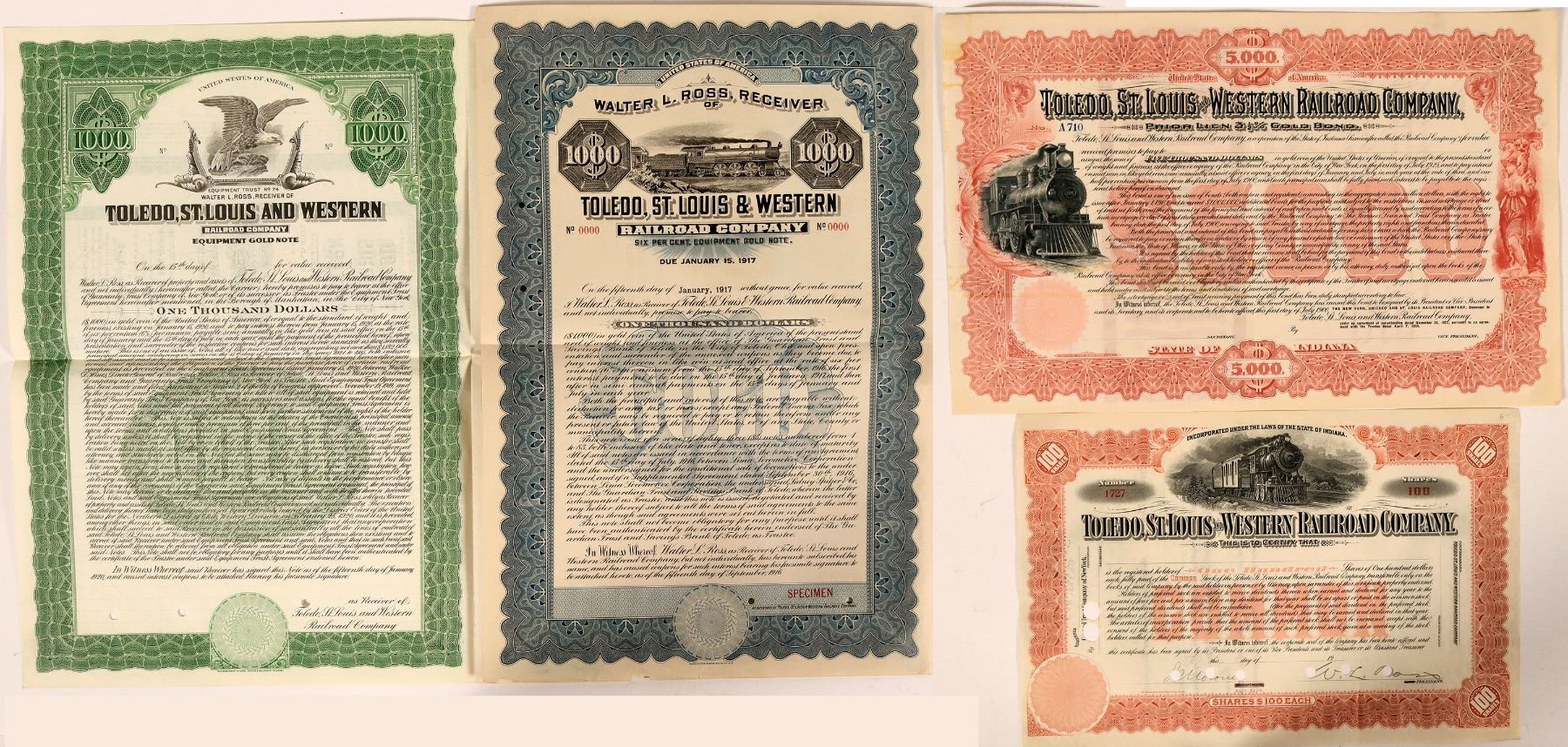 Four Certificates. Incorp Indiana 1900. 1. #1727, U/C, 100 shares @ $100 par. Orange, Dateline 19__. embossed seal, vignette train l-r , COMMON orange underprint. Fanklin Bank Note Co printer. EF