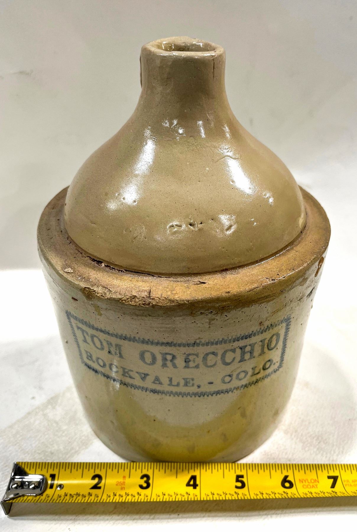J225 in Preble. Tom Orecchio/Rockvale, - Colo. 8.25x5.5" half gallon. .5" base chip, 1.5" shoulder chip, 1" side blemish, .25" base chip.