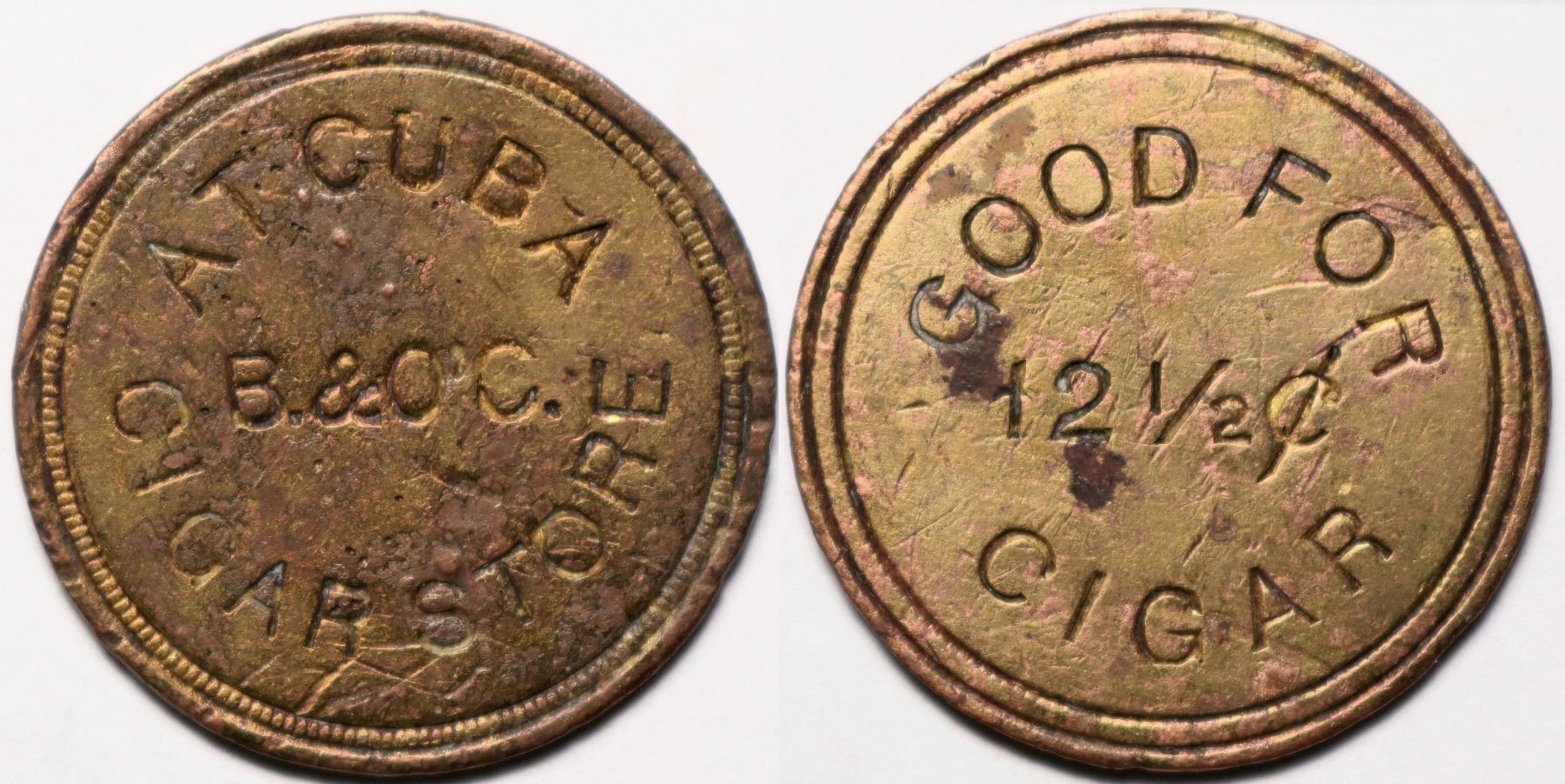 At Cuba / B& O'C / Cigar Store // GF / 12/5c / Cigar. From 2 years after the OK Corral- Wyatt Earp still in Tombstone could have been in this shop or handled this token.