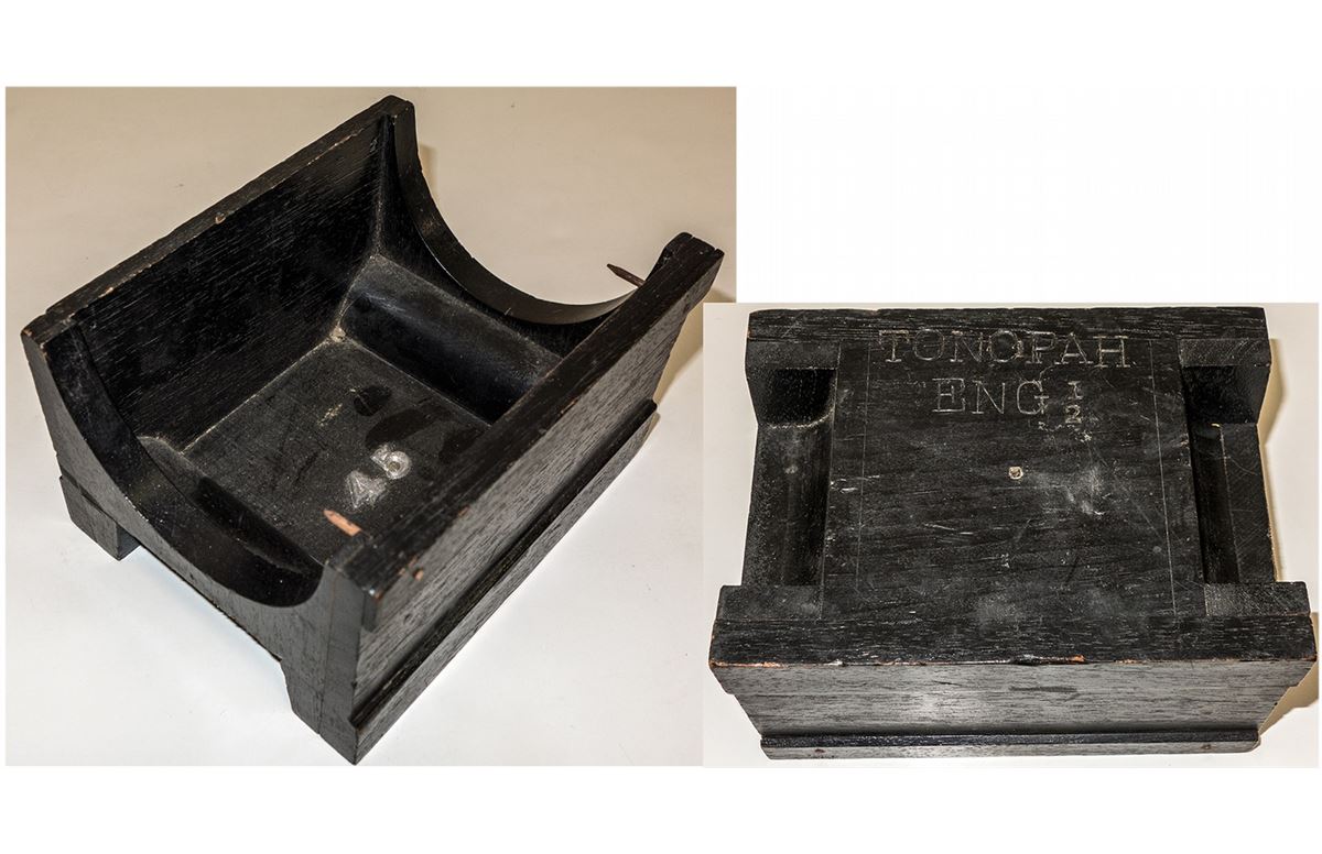 The Tonopah and Tidewater Railroad, the T&T, was a class II railroad extending roughly 200 miles through remote reaches of the Mojave Desert from the Santa Fe Railway railhead at Ludlow, California, through Death Valley and Amargosa Valley, terminating at the mining towns of Tonopah and Goldfield in the Great Basin Desert in Nye County, Nevada. The railroad was listed as a common carrier, however it was built by Francis Marion Smith the "Borax King" and his Pacific Coast Borax Company primarily to transport borax to processing and market. The Roundhouse in Carson City had a machine shop in the basement where these train parts were fabricated. Wood models were used for the metal parts.