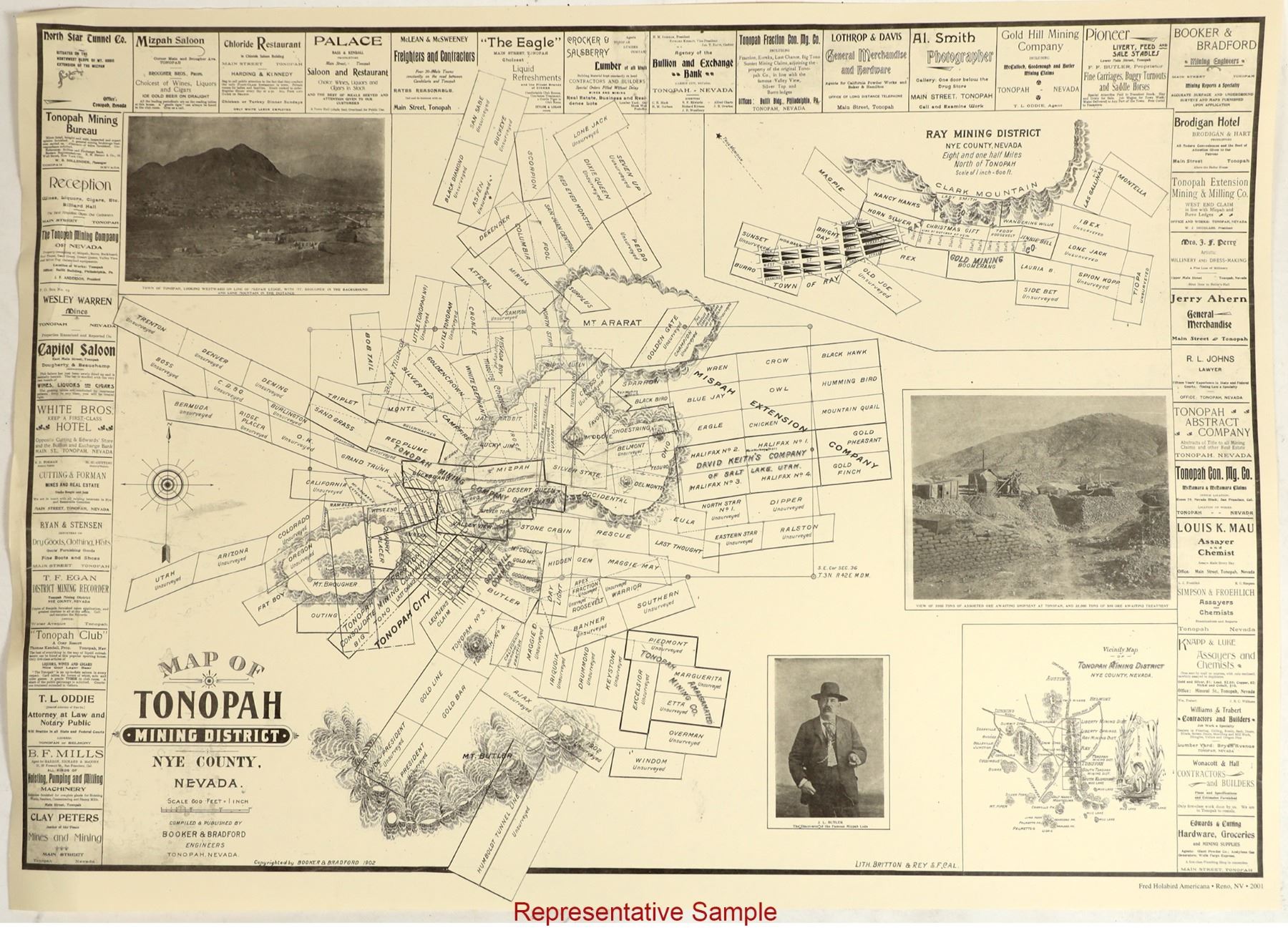 Tonopah mining district maps, modern reprints. This once bustling mining town is now largely defunct, serving mainly as a current day historical site. Gorgeous cream, off-white color. Very good condition, perfect for decorating, crafting, or retailing. About 100 maps. Measure 30.5x22". See photo.