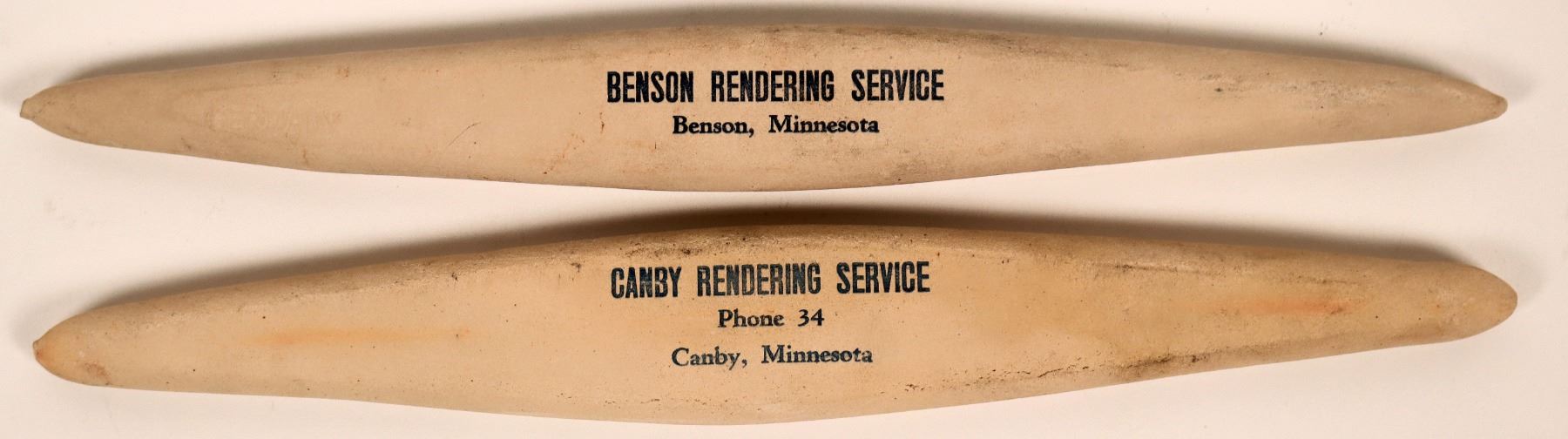 These are two (2) ceramic spreading tools about 9 in. long. These tools are thought to be used to spread the rib cage of a carcass to help the skinner remove entrails. Both are new and unused and provided by two rendering companies in Minnesota. These would work for medium sized game and farm animals.